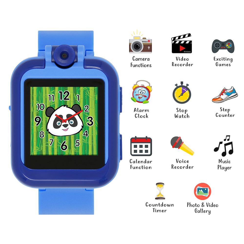 Περιστρεφόμενη κάμερα για φωτογραφίες και video, ξυπνητήρι, ημερολόγιο, stop watch, αριθμομηχανή, συσκευή εγγραφής φωνής, χρονόμετρο αντίστροφης μέτρησης και μια επιλογή από 10 εκπληκτικές οθόνες! Υπάρχει επίσης μια επιλογή από συναρπαστικά παιχνίδια για να διασκεδάσουν τα παιδιά, αλλά ο γονικός μας έλεγχος.Συνοδεύεται από ένα ζευγάρι ασορτί ακουστικά με μπλε αστέρια και αποθηκεύει έως και 40 από τα αγαπημένα τους τραγούδια, ώστε να μπορούν να συνδεθούν και να αρχίσουν να ακούνε. Η γενναιόδωρη οθόνη αφής επιτρέπει στα παιδιά να ελέγχουν εύκολα το ρολόι τους, καθώς το μαλακό λουράκι σιλικόνης είναι άνετο για αυτά. Δεν απαιτεί σύνδεση smartphone.
