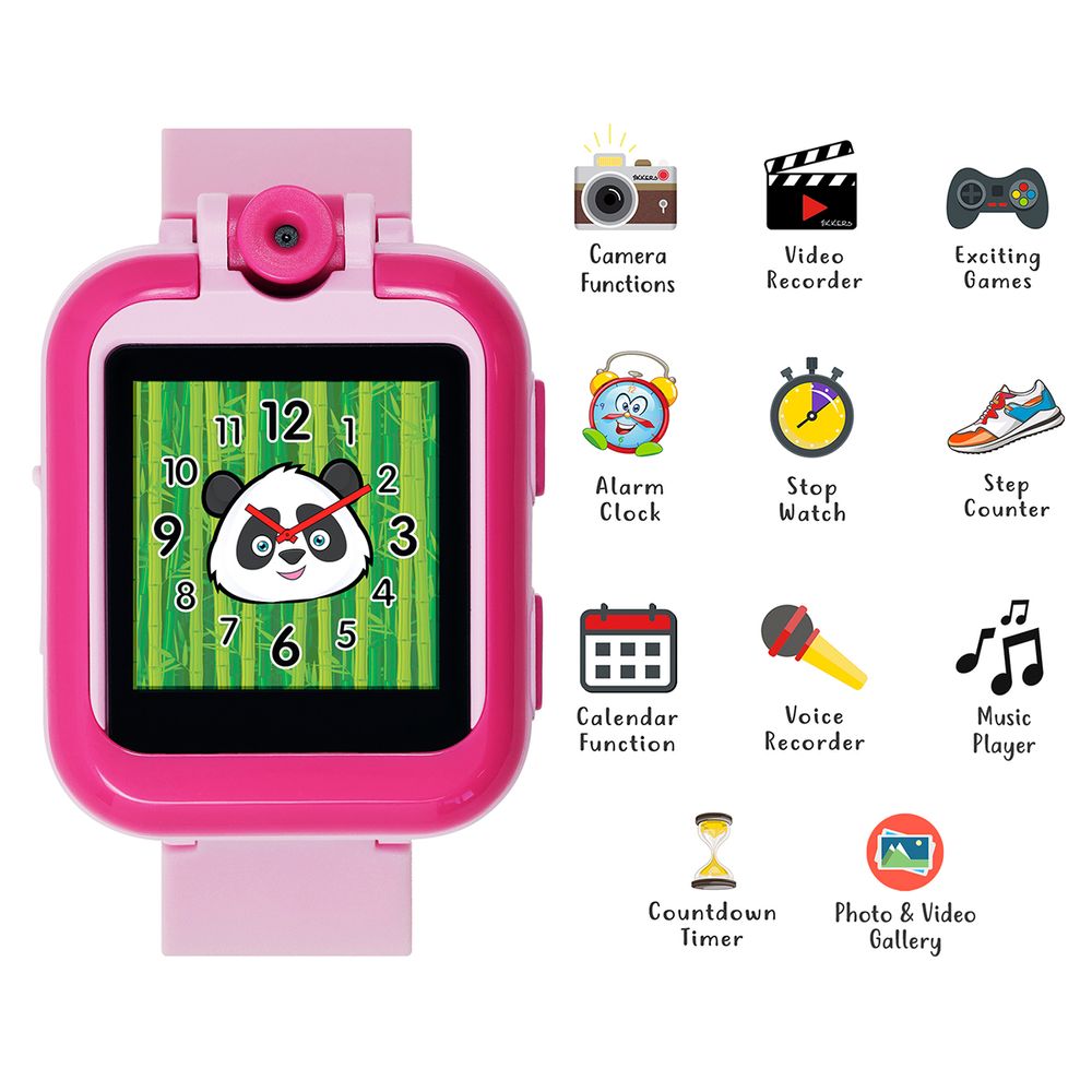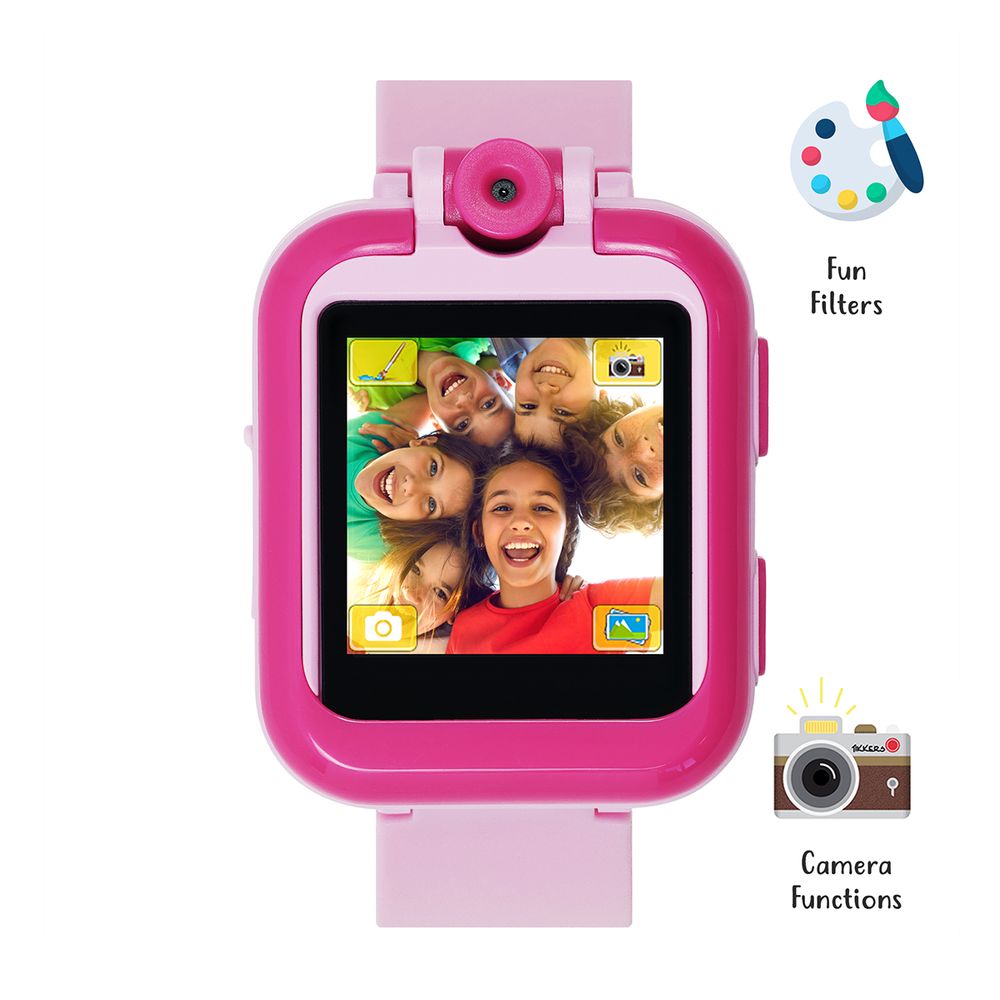 Περιστρεφόμενη κάμερα για φωτογραφίες και video, ξυπνητήρι, ημερολόγιο, stop watch, αριθμομηχανή, συσκευή εγγραφής φωνής, χρονόμετρο αντίστροφης μέτρησης και μια επιλογή από 10 εκπληκτικές οθόνες! Υπάρχει επίσης μια επιλογή από συναρπαστικά παιχνίδια για να διασκεδάσουν τα παιδιά, αλλά ο γονικός μας έλεγχος.Συνοδεύεται από ένα ζευγάρι ασορτί ακουστικά ροζ και αποθηκεύει έως και 40 από τα αγαπημένα τους τραγούδια, ώστε να μπορούν να συνδεθούν και να αρχίσουν να ακούνε. Η γενναιόδωρη οθόνη αφής επιτρέπει στα παιδιά να ελέγχουν εύκολα το ρολόι τους, καθώς το μαλακό λουράκι σιλικόνης είναι άνετο για αυτά. Δεν απαιτεί σύνδεση smartphone.