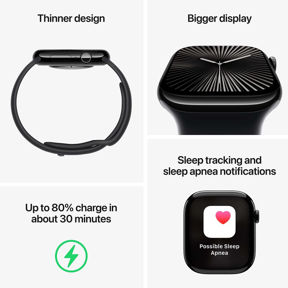Γνώρισε το Apple Watch Series 10. Μεγαλύτερη οθόνη με μεγαλύτερη περιοχή προβολής και λεπτότερη και πιο ελαφριά σχεδίαση. Απόκτησε προηγμένες δυνατότητες γυμναστικής και ταχύτερη φόρτιση.