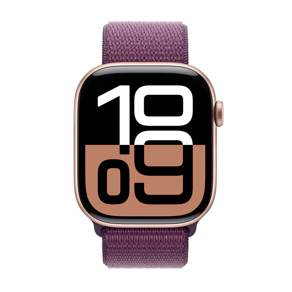 Apple Watch Series 10 GPS 42mm Rose Gold Aluminium Case with Plum Sport Loop SmartWatch