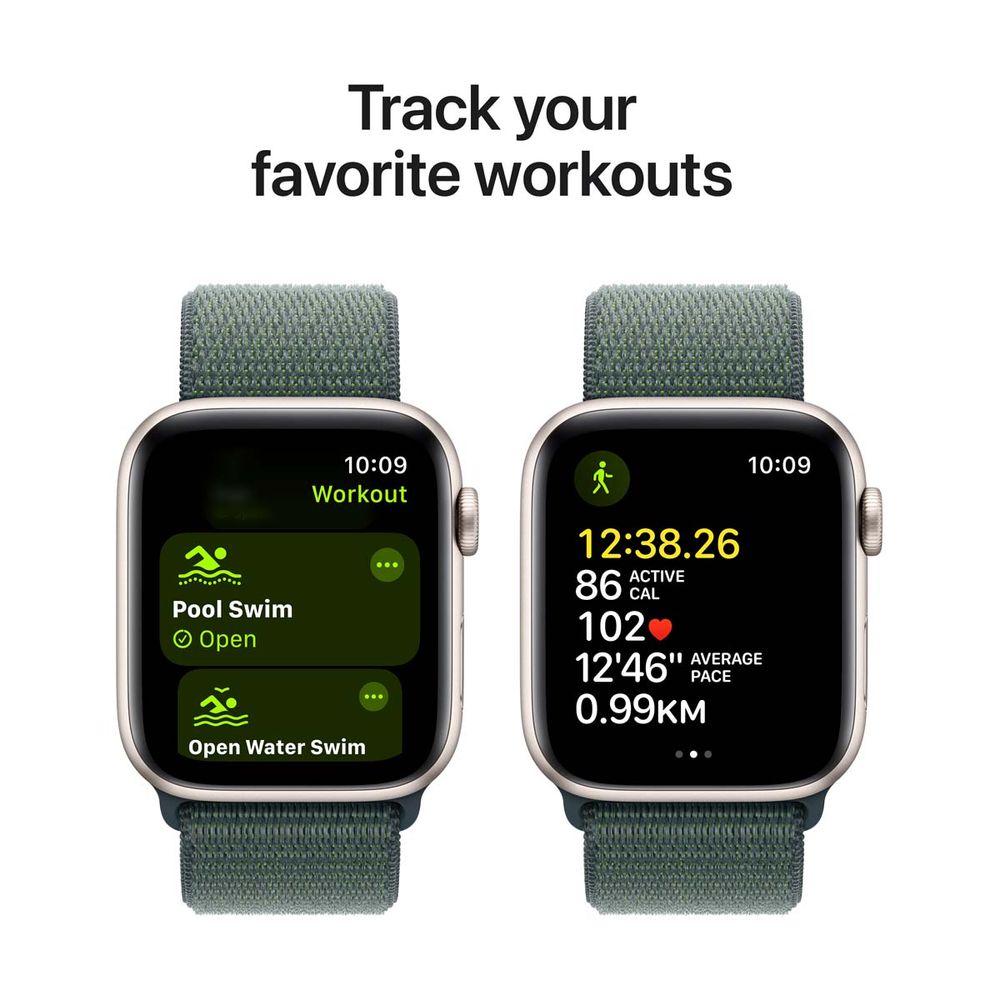 Apple Watch SE GPS + Cellular 40mm Starlight Aluminium Case with Lake Green Sport Loop SmartWatch