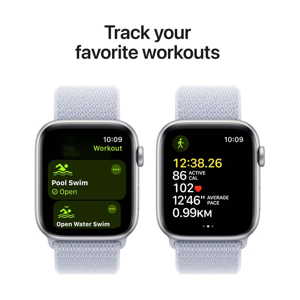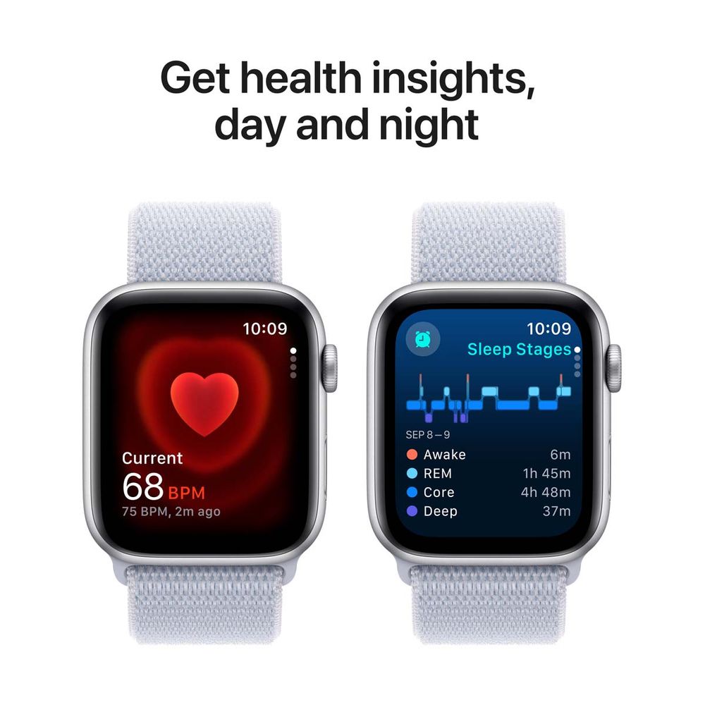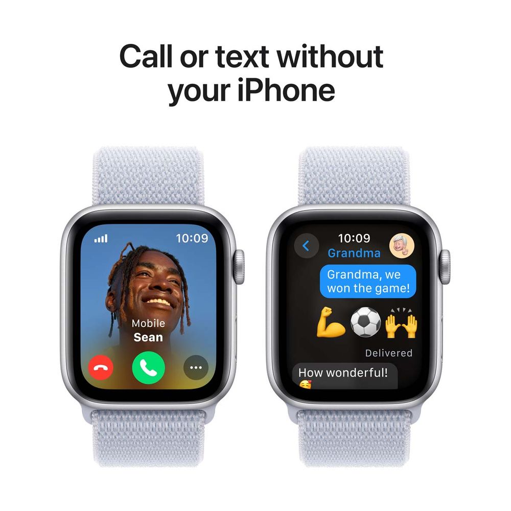 Apple Watch SE GPS + Cellular 44mm Silver Aluminium Case with Blue Cloud Sport Loop SmartWatch