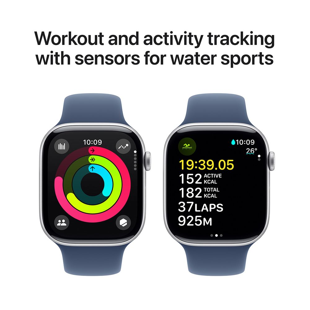Apple Watch Series 10 GPS + Cellular 46mm Silver Aluminium Case with Denim Sport Band - S/M SmartWatch