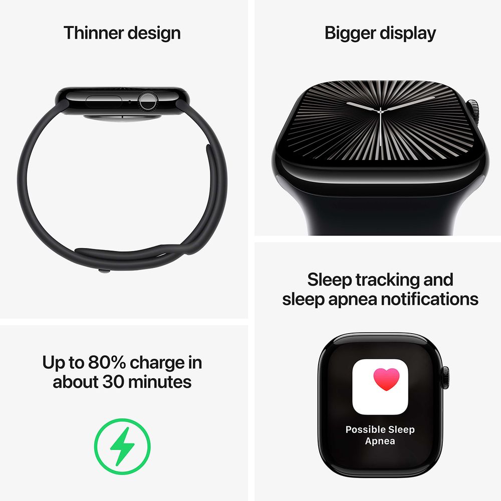 Γνώρισε το Apple Watch Series 10. Μεγαλύτερη οθόνη με μεγαλύτερη περιοχή προβολής και λεπτότερη και πιο ελαφριά σχεδίαση. Απόκτησε προηγμένες δυνατότητες γυμναστικής και ταχύτερη φόρτιση.