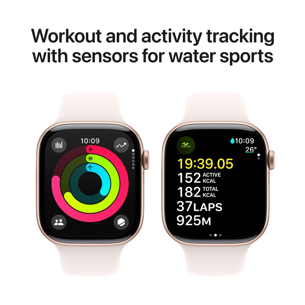 Apple Watch Series 10 GPS + Cellular 46mm Rose Gold Aluminium Case with Light Blush Sport Band - S/M SmartWatch