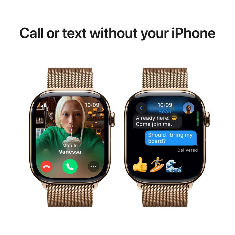 Apple Watch Series 10 GPS + Cellular 46mm Gold Titanium Case with Gold Milanese Loop - M/L SmartWatch