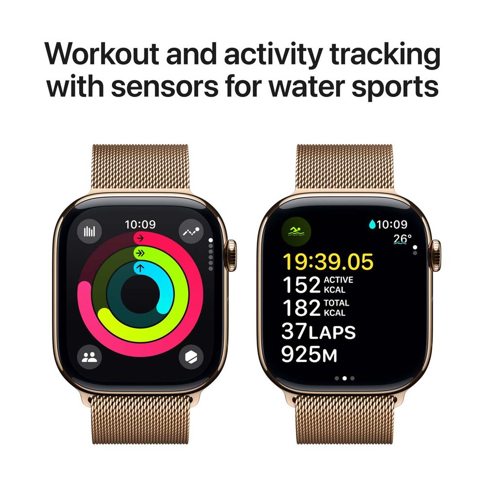 Apple Watch Series 10 GPS + Cellular 42mm Gold Titanium Case with Gold Milanese Loop SmartWatch