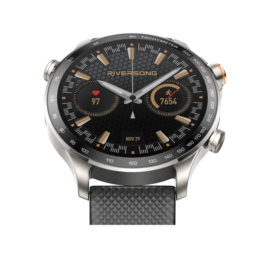 Το Riversong Smartwatch Motive 10 GT είναι ένα κομψό και λειτουργικό έξυπνο ρολόι με οθόνη AMOLED 1.43 ιντσών. Υποστηρίζει κλήσεις μέσω Bluetooth και η μπαταρία του διαρκεί έως μία εβδομάδα με κανονική χρήση. Διαθέτει αισθητήρες για καρδιακούς παλμούς, SpO2 και ύπνο, καθώς και πέντε συστήματα εντοπισμού θέσης. Είναι ανθεκτικό στο νερό με πιστοποίηση 3 ATM, ιδανικό για κολύμπι.