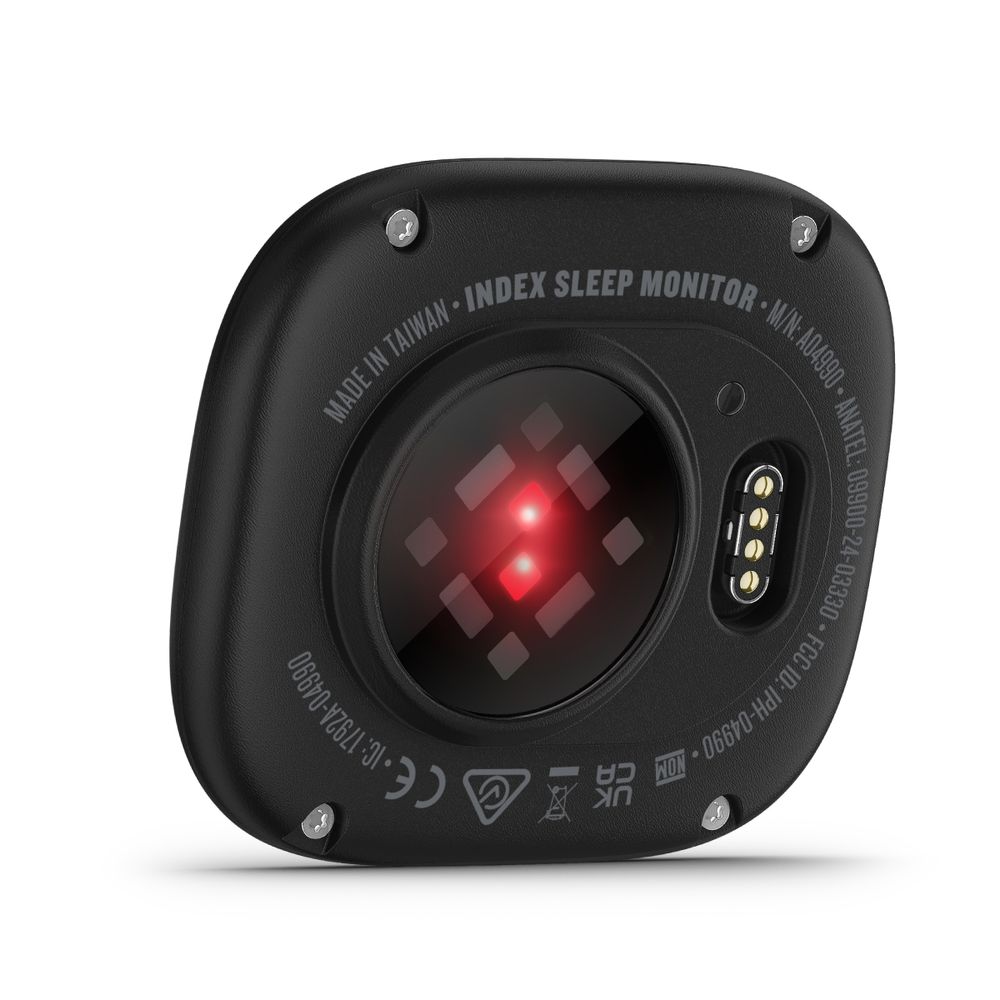 Ανακαλύψτε το Index Sleep Monitor! Άνετο και ελαφρύ, φοριέται στο πάνω μέρος του χεριού και καταγράφει μετρήσεις ύπνου και αποκατάστασης, όπως βαθμολογία ύπνου, στάδια ύπνου και κατάσταση HRV. Χρησιμοποιεί τη θερμοκρασία σώματος για εξελιγμένη καταγραφή γυναικείας υγείας, παρέχοντας πληροφορίες για τον έμμηνο κύκλο. Συγχρονίζεται αυτόματα με συμβατό smartwatch Garmin μέσω της εφαρμογής Garmin Connect. Αυτονομία μπαταρίας έως 7 νύχτες.