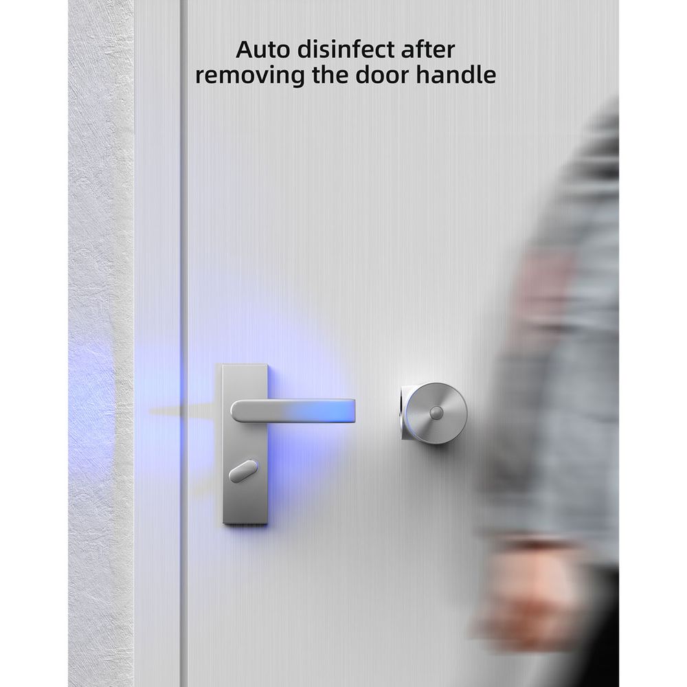 Απολυμαντικό χερουλιού πόρτας σε λευκό χρώμα, ιδανικό για το σπίτι, με εξαιρετική αντιβακτηριακή δράση. Είναι απολύτως ασφαλές, καθώς απολυμαίνει με υπεριώδη ακτινοβολία και δεν είναι ραδιενεργό. Επίσης, δεν αφήνει κατάλοιπα ή δευτερεύουσα μόλυνση. Διαθέτει έξυπνη λειτουργία που ξεκινά αυτόματα αμέσως μόλις αφήσεις το χερούλι της πόρτας.