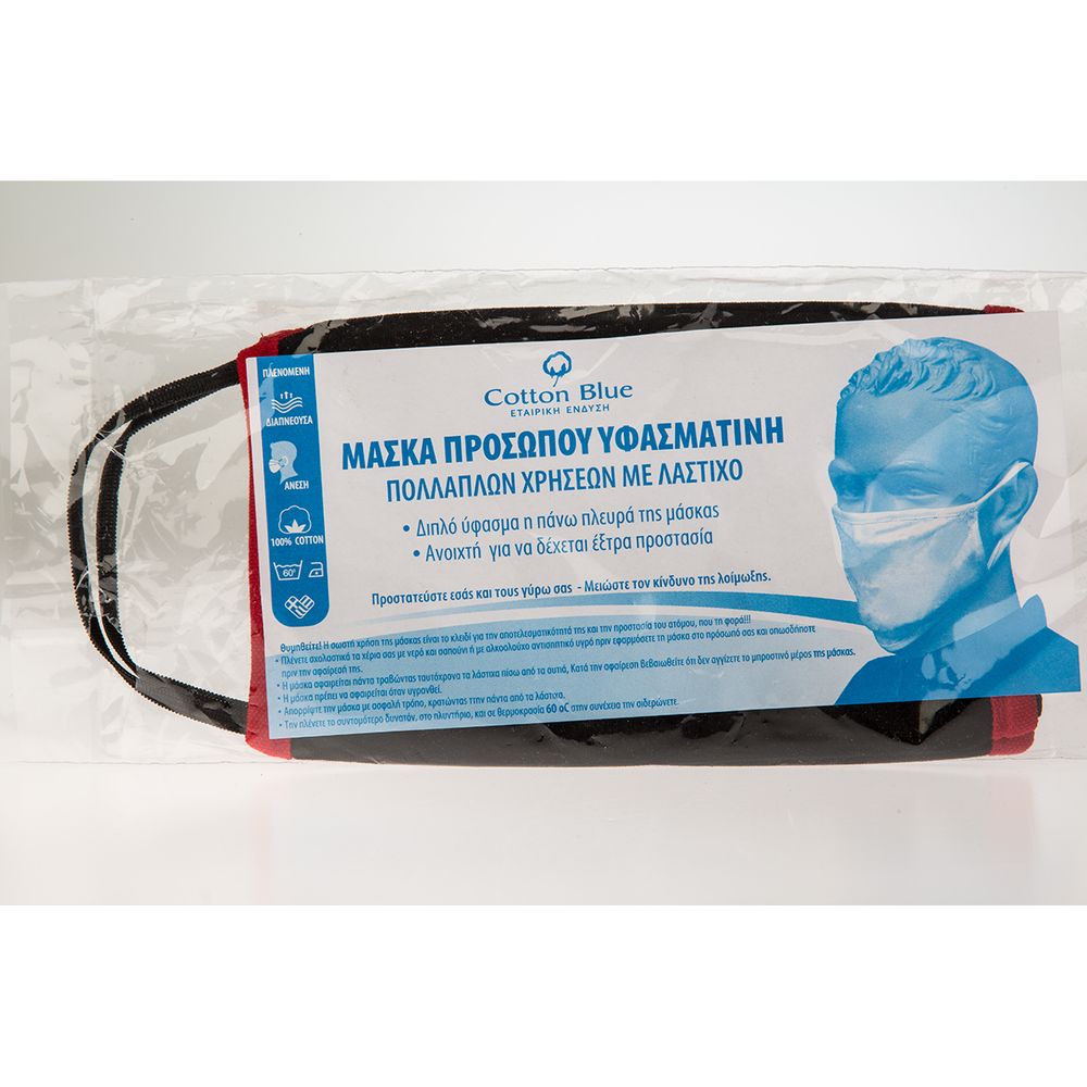 Υφασμάτινη μάσκα προσώπου πολλαπλών χρήσεων με διπλό ύφασμα η πάνω πλευρά της μάσκας και ανοιχτή για να δέχεται επιπλέον προστασία.