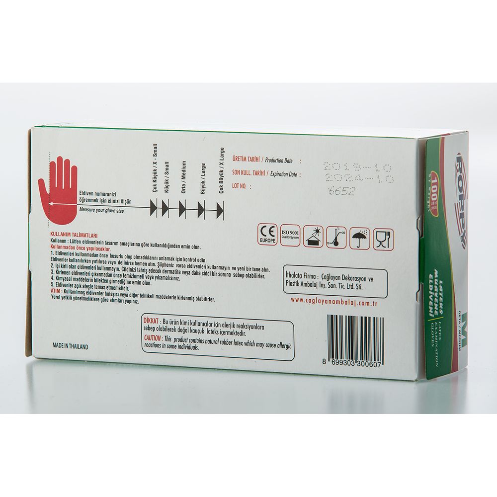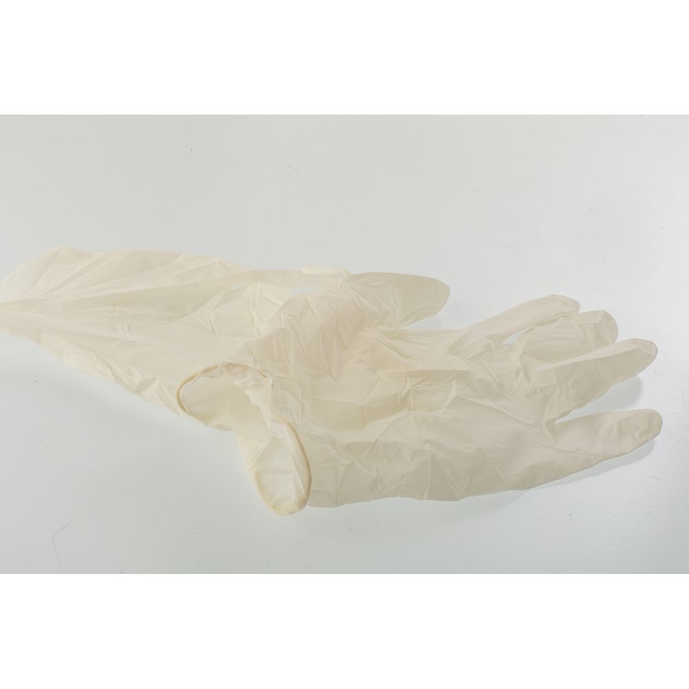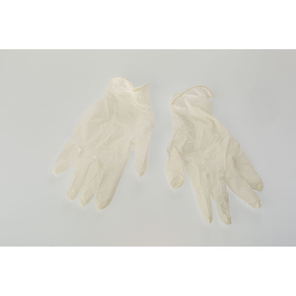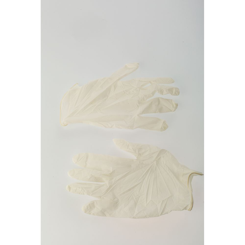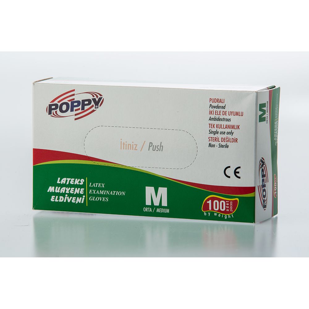 Συσκευασία με 100 τεμάχια Poppy Latex γάντια προστασίας με πούδρα μίας χρήσης, σε λευκή απόχρωση και Medium μέγεθος.