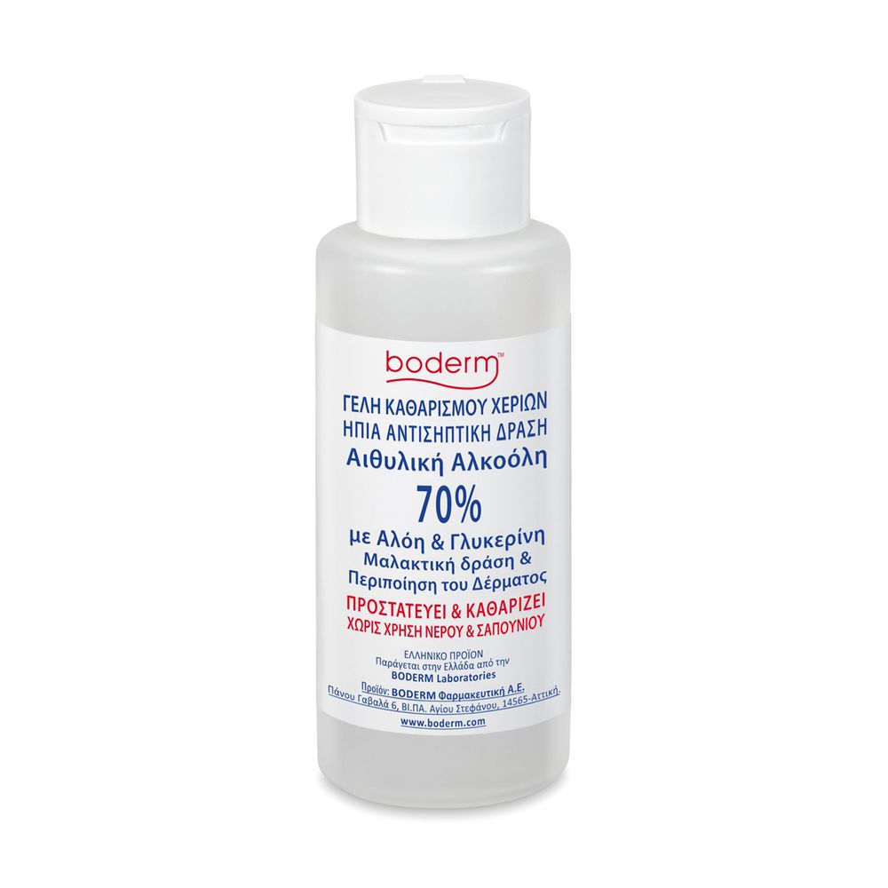 Αντισηπτικό χεριών Boderm Gel με αιθυλική αλκοόλη 70%, αλόη και γλυκερίνη, σε συσκευασία 90ml. Βοηθάει ώστε να έχεις καθαρά και προστατευμένα χέρια.
