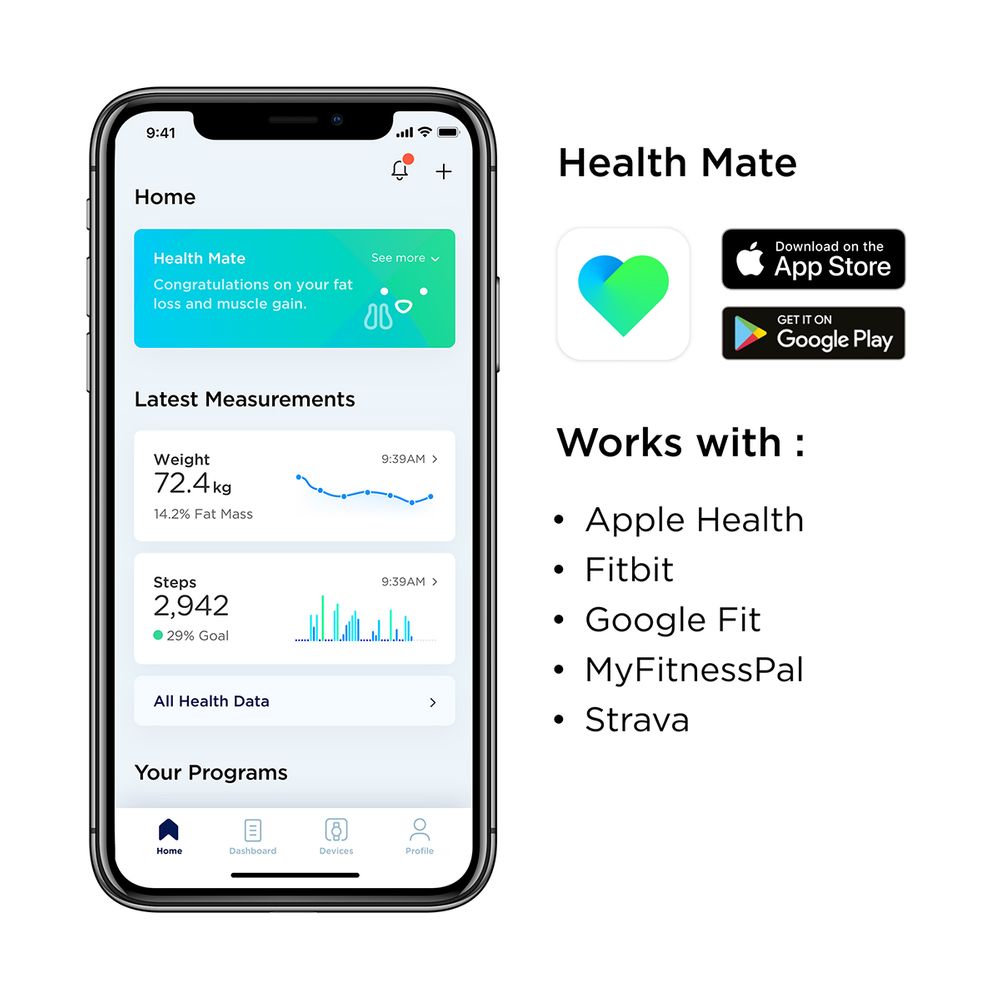 Η έξυπνη ζυγαριά Body+ δίνει μια ολοκληρωμένη εικόνα της σύστασης του σώματός σου για να σε βοηθήσει να κάνεις πιο έξυπνες επιλογές που μπορούν να έχουν σημαντικό αντίκτυπο στην επίτευξη των στόχων βάρους και φυσικής κατάστασης σου. Χάρη στην σύνδεση Wi-Fi και την εφαρμογή Health Mate, έχεις όλες τις πληροφορίες για την φυσική σου κατάσταση, στο Smartphone σου.
