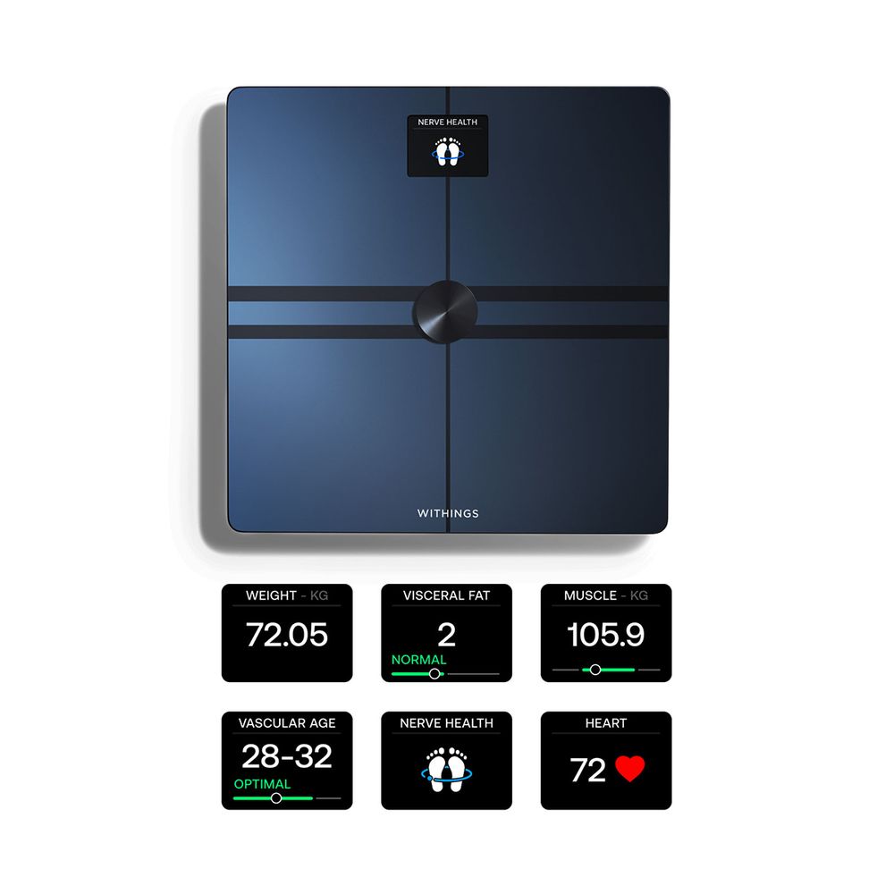 Το Body Comp είναι μια εξαιρετικά ακριβής και εύχρηστη κλινικά ελεγμένη έξυπνη ζυγαριά με σύνδεση Wi-Fi & Bluetooth και μέγιστο βάρος χρήστη 200 kg, που προσφέρει μια ολοκληρωμένη εμπειρία παρακολούθησης σύστασης σώματος. Δες όλα τα δεδομένα όπως ποσοστό λίπους, νερού, οστών και μυών στην ευκρινή οθόνη 2.8” ή στην εφαρμογή Withings για smartphones.