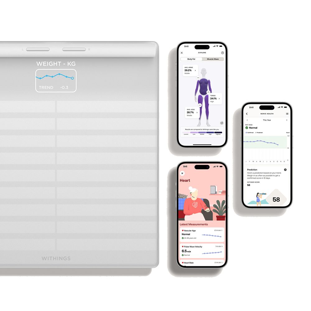 Το Body Scan είναι μια εύχρηστη κλινικά ελεγμένη έξυπνη ζυγαριά με σύνδεση Wi-Fi & Bluetooth και μέγιστο βάρος χρήστη 200 kg, που προσφέρει μια ολοκληρωμένη εμπειρία παρακολούθησης σύστασης σώματος. Χάρη στην ενσωματωμένη λαβή, αναλύει τμηματικά το σώμα σου, για ακριβής μετρήσεις. Δες όλα τα δεδομένα όπως ποσοστό λίπους, νερού, οστών και μυών στην ευκρινή οθόνη 2.8” ή στην εφαρμογή Withings για smartphones.