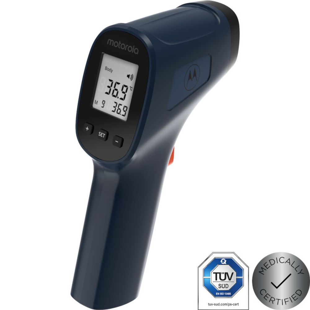 Το ψηφιακό θερμόμετρο μετρά τις θερμοκρασίες του μετώπου, των τροφίμων και των υγρών, όπως του γάλατος ή του νερού του μπάνιου. Η όλη διαδικασία κρατάει λιγότερο από ένα δευτερόλεπτο με το κράτημα του Motorola TE-93 Dark Blue εντός 5 εκατοστών από το μέτωπο ή το υγρό. Επιπλέον, μπορείς να διαβάσεις εύκολα τη θερμοκρασία στη φωτιζόμενη οθόνη ενώ εκπέμπει ένα ηχητικό σήμα όταν ολοκληρωθεί η μέτρηση. Το θερμόμετρο σε ειδοποιεί ηχητικά και όταν μετρήσεις άτομο με πυρετό.