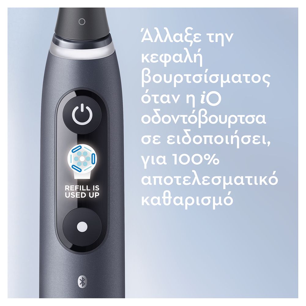Η σειρά Oral-B iO Series 8 με την επαναστατική iO τεχνολογία, συνδυάζει τις ισχυρές, αλλά απαλές μικροδονήσεις με τη μοναδική στρογγυλή κεφαλή της Oral-B για επαγγελματικό καθαρισμό κάθε μέρα. Ο εσωτερικός μηχανισμός λειτουργεί με μαγνητικές κινήσεις χωρίς τριβή & θόρυβο, μεταφέροντας μικροδονήσεις στις άκρες των ινών της κεφαλής βουρτσίσματος για ένα εξαιρετικό καθαρισμό.
