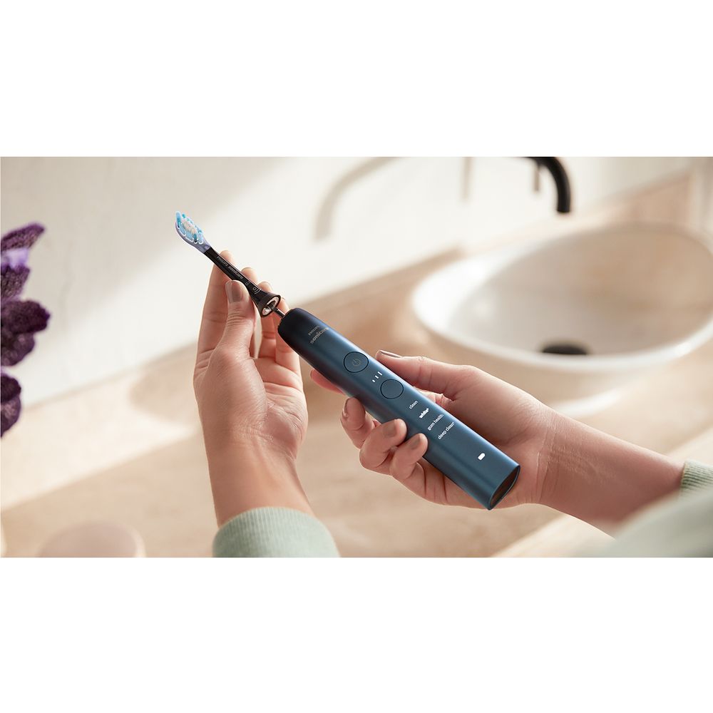 Μοναδική τεχνολογία Sonic με 62.000 κινήσεις/λεπτό και 20 φορές πιο αποτελεσματικό βούρτσισμα για βαθύ καθαρισμό με την Sonicare DiamondClean 9000! Ξεκίνησε την ημέρα σου με στυλ, με την προηγμένη τεχνολογία Sonicare για λευκότερα δόντια και υγιή ούλα. Φροντίζει απαλά τα ούλα, με συνδεδεμένη εφαρμογή για καθοδήγηση και παρακολούθηση. Επίλεξε ανάμεσα σε 4 λειτουργίες και 3 ρυθμίσεις έντασης για εξατομικευμένη εμπειρία βουρτσίσματος.