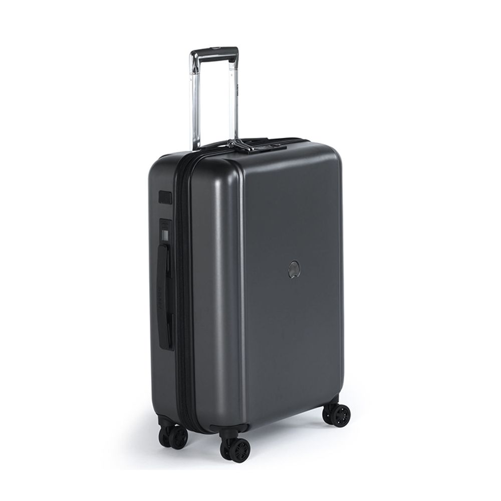 Smart βαλίτσα Delsey Pluggage με παγκόσμιο εντοπισμό GPS, ψηφιακή ζυγαριά με οθόνη, κλειδαριά ασφαλείας, δακτυλικό αποτύπωμα και ενσωματωμένη θύρα USB για να μπορείς να φορτίζεις το smartphone ή το tablet σου.