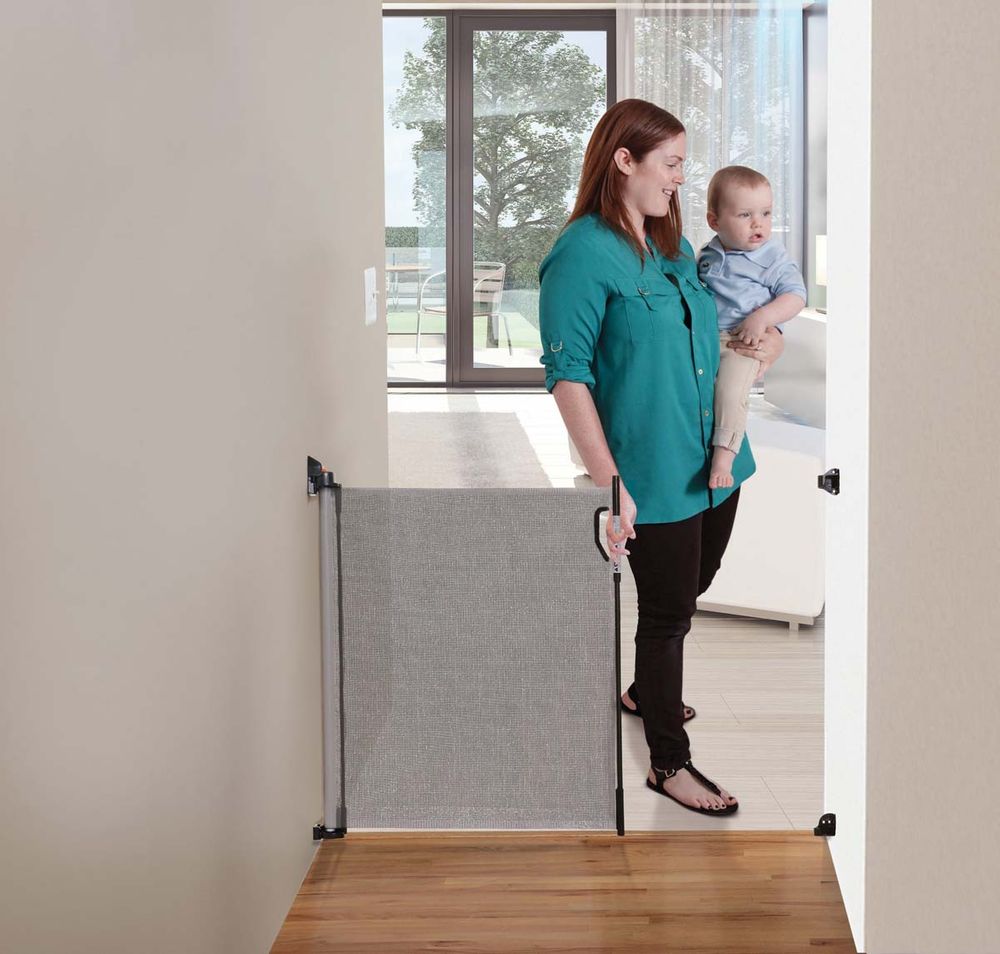 Πτυσσόμενη πόρτα ασφαλείας DreamBaby, ιδανική για κάθε τύπο σπιτιού αφού διαθέτει ευέλικτα στηρίγματα ώστε να μπορεί να προσαρμοστεί σε εσωτερικές ή εξωτερικές περιοχές των θυρών και των ανοιγμάτων, γωνίες, διαδρόμους και κλιμακοστάσια. Καλύπτει χώρους μικρού ανοίγματος έως και 140 cm, ενώ είναι κατασκευασμένη από ανθεκτικό πλέγμα υψηλής ποιότητας με φίλτρο για την υπεριώδη ακτινοβολία.