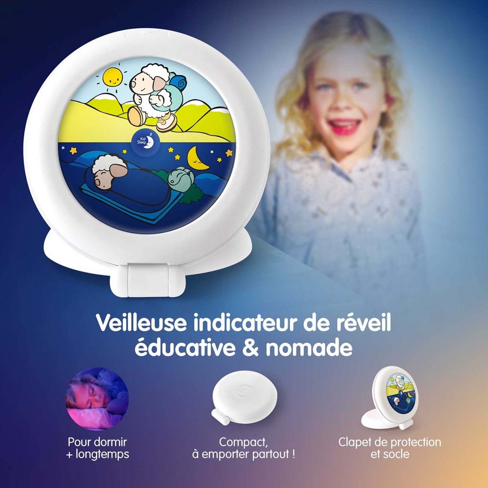 Φωτάκι νυχτός - Ξυπνητήρι Kid Sleep Globetrotter ιδανικό για παιδιά που δεν γνωρίζουν ακόμα την ώρα. όμως μπορούν να αποκτήσουν αίσθηση του χρόνου. Διαθέτει LED φωτισμό και είναι εύκολο στη χρήση. λειτουργώντας με ή χωρίς ηχητικό ξυπνητήρι.