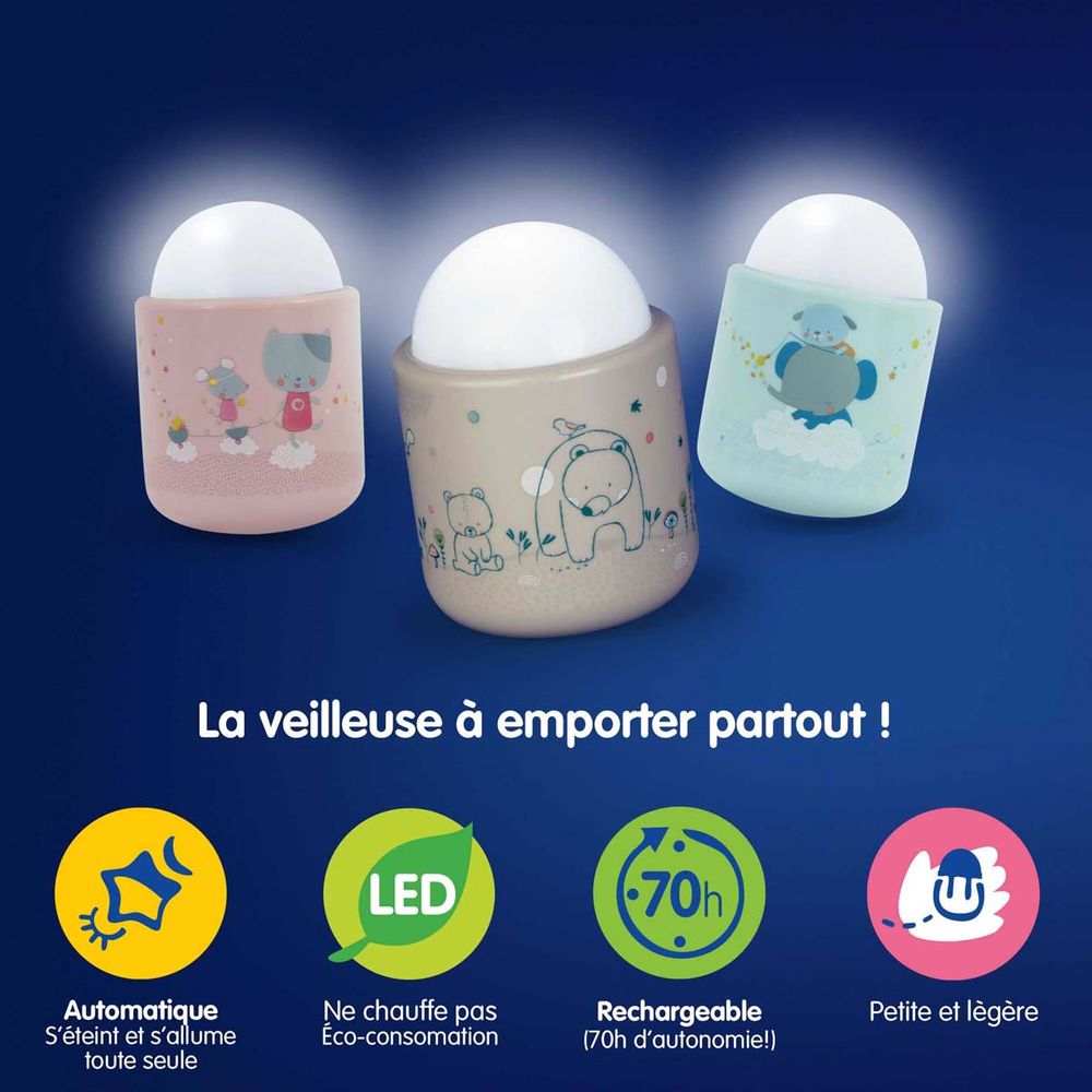Φωτάκι νυκτός αυτόματο Blue Pabolo που προβάλλει μια απαλή λάμψη για να ηρεμεί τα παιδιά όλη τη νύχτα. Ανάβει μόνο του όταν πέφτει η νύχτα και σβήνει όταν ανατέλλει ο ήλιος. ενώ χάρη στον αισθητήρα φωτός του. η έντασή του ποικίλλει αυτόματα ανάλογα με το φως του περιβάλλοντος.