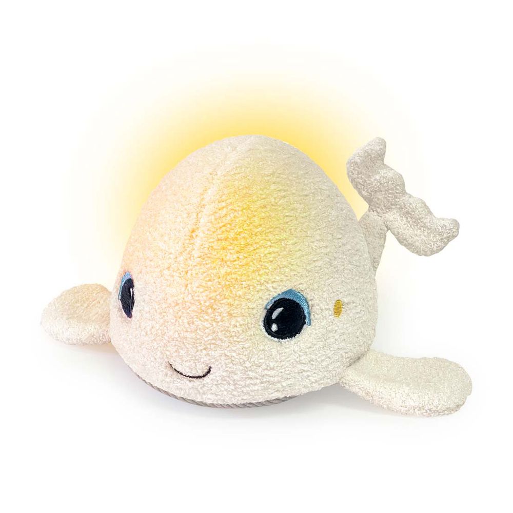 Φωτάκι νυκτός Beluga Whale Pabobo με λευκό ή έγχρωμο φως-ουράνιο τόξο και αισθητήρα κλάματος για να ξεκινά μόνο του αν εντοπιστεί κλάμα μωρού. Διαθέτει 2 χαλαρωτικά νανουρίσματα. χρονοδιακόπτη και 7 λευκούς ή ροζ ήχους. απενεργοποιήται μετά από 20 λεπτά.