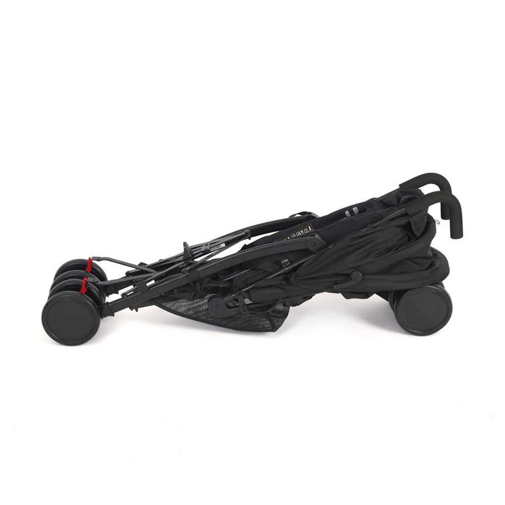 Ιμάντας μεταφοράς, Πλήρης ανάκλιση και πολλαπλές θέσεις ανάκλισης, Μεγάλη κουκούλα με προέκταση και γείσο, Ρυθμιζόμενο υποπόδιο 3 θέσεων, 4 διπλές ρόδες, Συνδεδεμένο φρένο στους πίσω τροχούς, Κλείδωμα κίνησης στους μπροστινούς τροχούς, Διπλοί τροχοί με περιστροφή, Καλάθι μικροαντικειμένων.