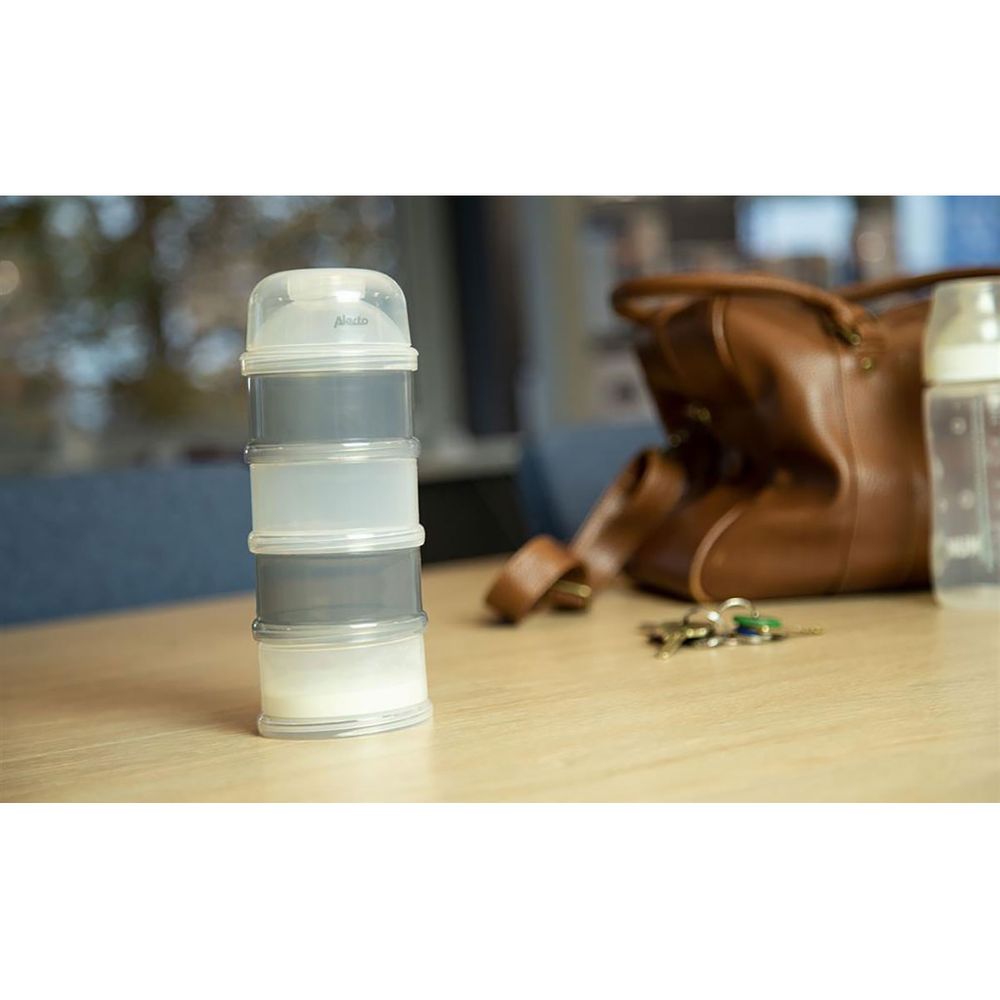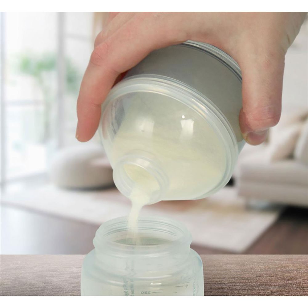 Ιδανικός για την αποθήκευση γάλατος στο σπίτι, αποτελείται από 4 δοχεία τοποθετημένα το ένα μέσα στο άλλο για εξοικονόμηση χώρου. Κάθε δοχείο χωρά 100 ml ενώ διαθέτουν βιδωτό καπάκι με πιο ασφαλές κλείσιμο. Περιλαμβάνεται ειδικό βιδωτό στόμιο για να γίνεται εύκολα η μεταφορά της σκόνης. Τέλος, είναι ιδανικό για ταξίδια λόγω του μικρού βάρους και όγκου, ενώ καθαρίζεται εύκολα και γρήγορα.