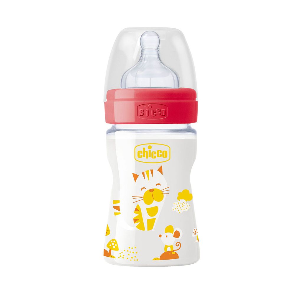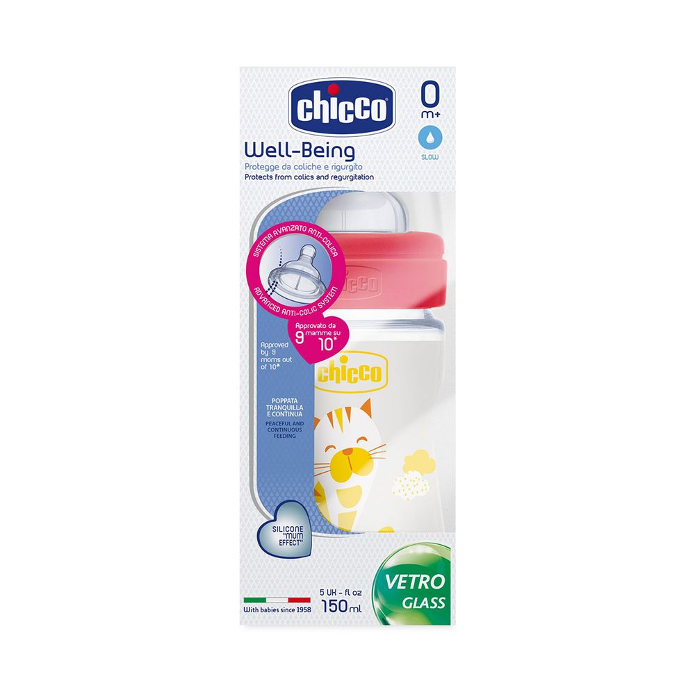 Chicco Γυάλινο Μπιμπερό Σιλικόνης 150ml - Cat Κόκκινο