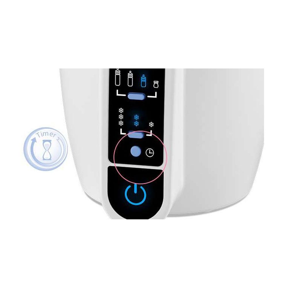 Η ψηφιακή συσκευή θέρμανσης μπιμπερό επιτρέπει την προετοιμασία των μπιμπερό και των ομογενοποιημένων τροφών στην ιδανική θερμοκρασία για το γεύμα του μωρού, εύκολα και μέσα σε λίγα λεπτά. Αρχικά επιλέγεις το μέγεθος του μπιμπερό ή του βάζου που θέλεις να θερμάνεις, κατόπιν την αρχική του θερμοκρασία και εν συνεχεία πατάς το ON. Επίσης, έχεις τη δυνατότητα να προγραμματίσεις την ώρα που επιθυμείς να είναι έτοιμη η τροφή (έως 60λεπτά). Όταν φτάσει η επιθυμητή θερμοκρασία ακούς ένα ηχητικό σήμα.