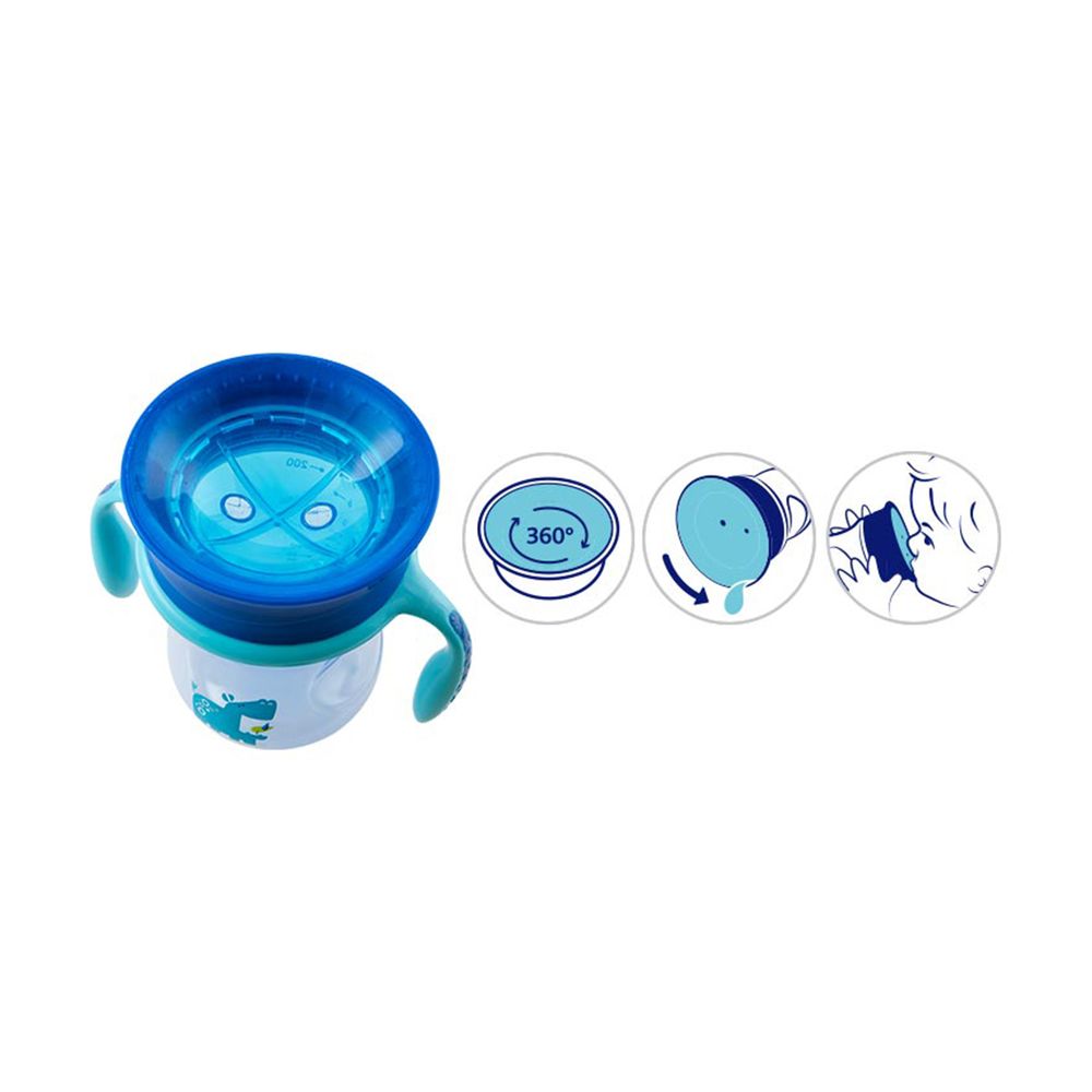 Ιδανικό, ώστε το παιδί να μάθει να πίνει με ποτήρι αλλά χωρίς διαρροές. Έχει 360˚ αφαιρούμενη μεμβράνη σιλικόνης που ενεργοποιείται καθώς πίνει το παιδί. Προωθεί την ανεξάρτητη πόση, καθώς απελευθερώνει το υγρό τη στιγμή που τα χείλη του παιδιού πιέζουν το χείλος του ποτηριού, ενώ συγχρόνως αποτρέπει τις διαρροές. Η μεμβράνη είναι διάφανη ώστε το παιδί να αντιλαμβάνεται το νερό που έρχεται προς αυτό και να μαθαίνει να το διαχειρίζεται. Η μεμβράνη αφαιρείται για εύκολη ροή.