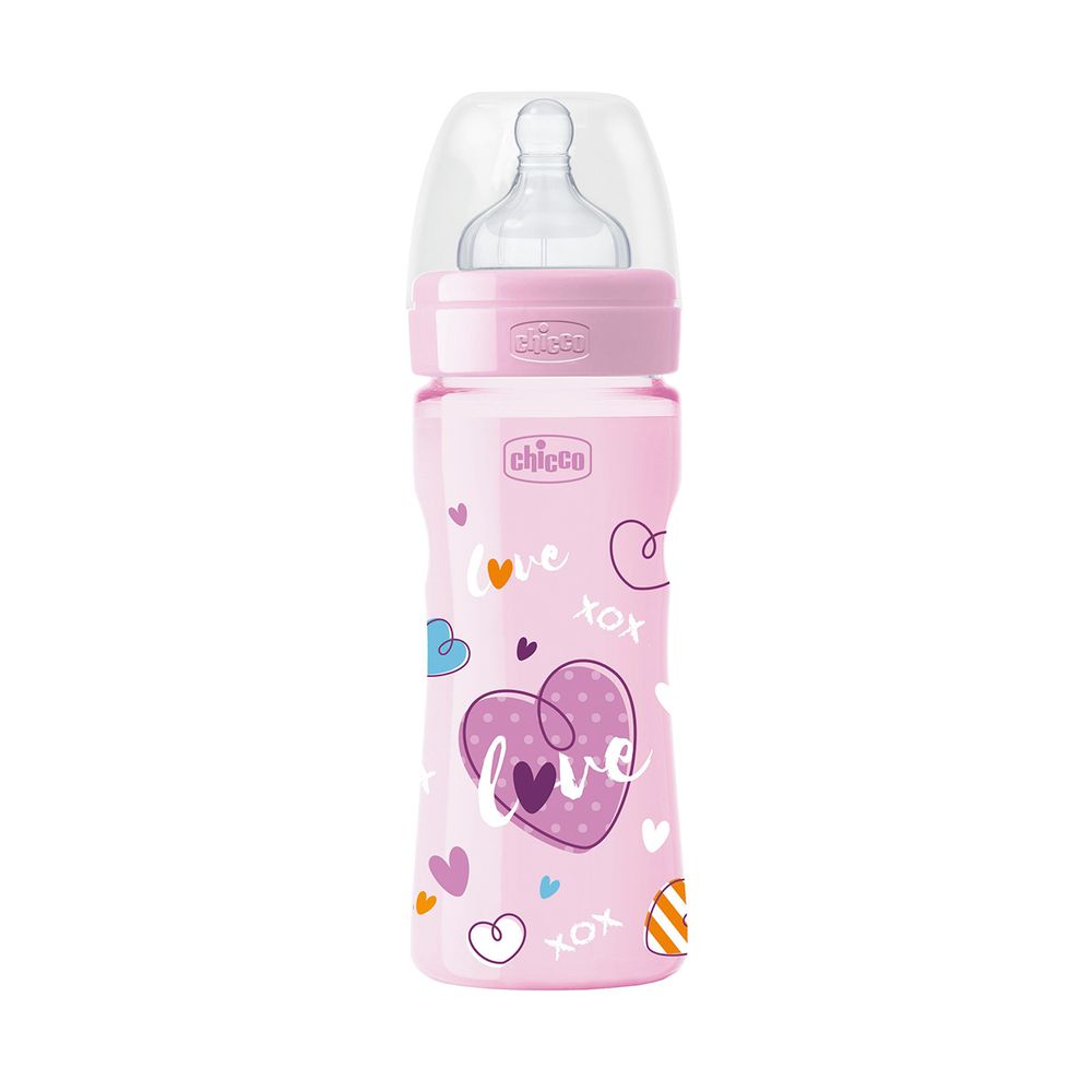 Chicco Well Being Ροζ 250ml Μπιμπερό Πλαστικό με Θηλή Σιλικόνης