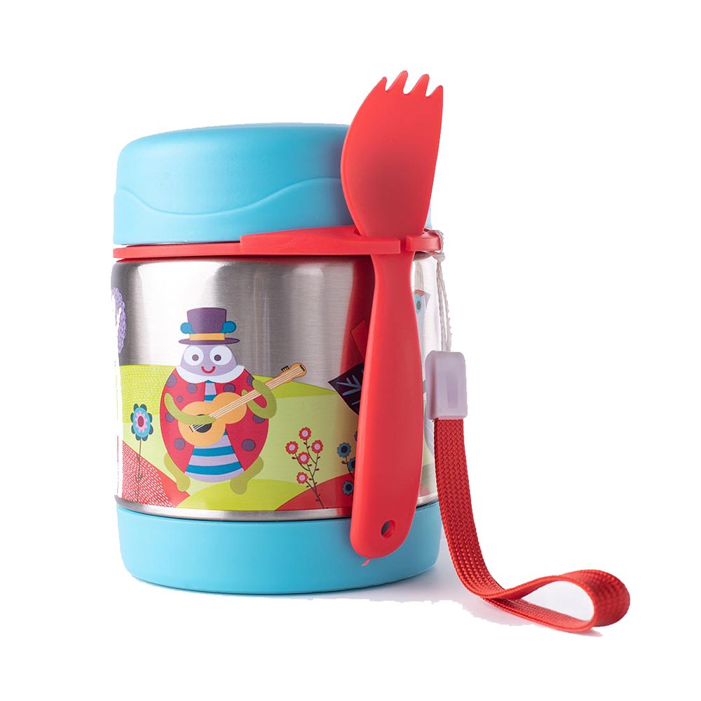 Από ανοξείδωτο ατσάλι που διατηρεί για ώρες το φαγητό ζεστό ή κρύο. Περιλαμβάνει κουταλοπίρουνο 2 σε1 και ιμάντα για μεταφορά. Έχει χωρητικότητα 300ml.