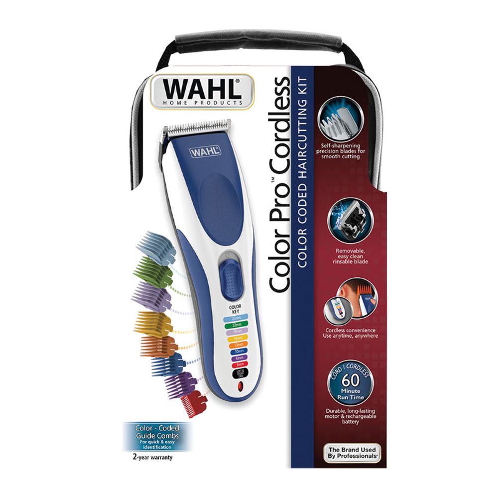 Η Wahl Color Pro Cordless είναι κουρευτική μηχανή ρεύματος/επαναφορτιζόμενη με αποσπώμενη και πλενόμενη κεφαλή, που συνιστάται για μοντέρνα κουρέματα και επαγγελματικά "σβησίματα", για εντατική χρήση και ποιότητα . Εύκολο κούρεμα χάρη στα χρωματιστά χτενάκια.