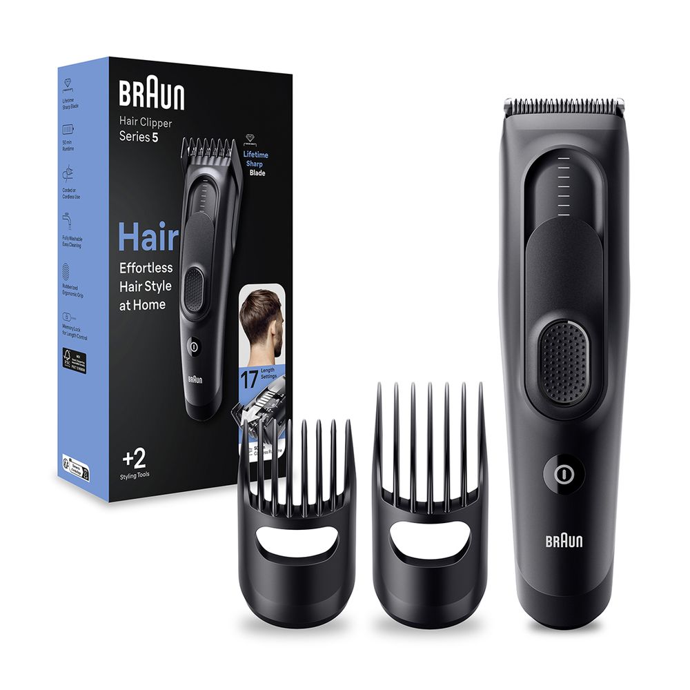 Κουρευτική μηχανή Braun HC5330 με 17 ρυθμίσεις κοπής, εξαιρετικά κοφτερή λεπίδα, εργονομική λαβή από καουτσούκ, ασφαλές κλείδωμα με σύστημα μνήμης, 50 λεπτά αυτονομίας και ένδειξη φόρτισης LED.