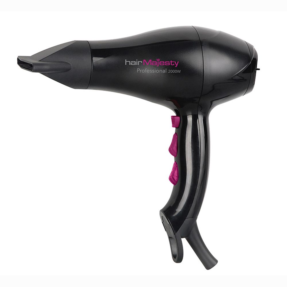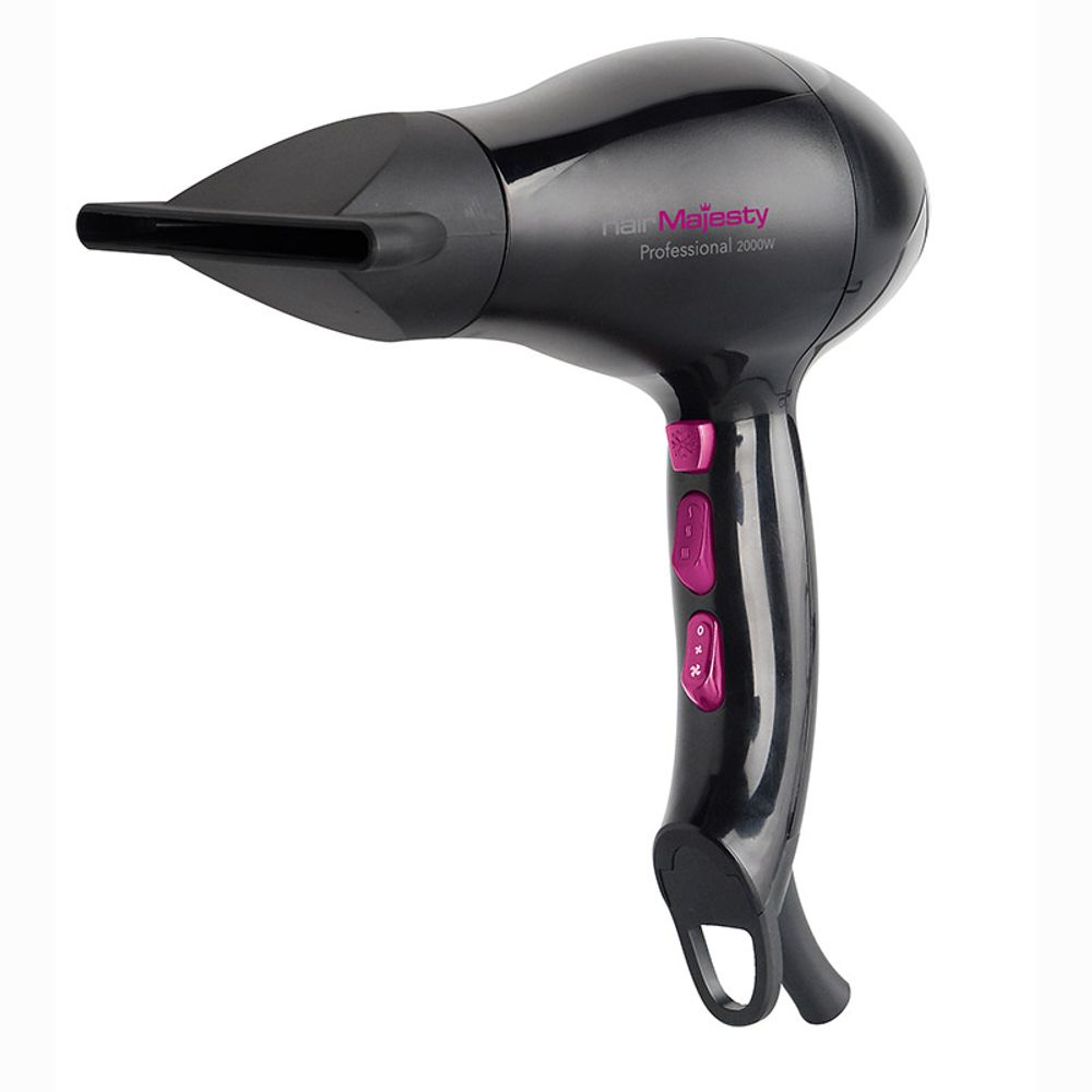 Σεσουάρ μαλλιών Hair Majesty HM5021 με επαγγελματικό AC μοτέρ με ισχύ 2000 Watt , 2 ταχύτητες και 3 ρυθμίσεις θερμοκρασίας . Επιπλέον διαθέτει διακόπτη παροχής ψυχρού αέρα, λεπτό στόμιο κατεύθυνσης αέρα, φυσούνα και αποσπώμενο φίλτρο.