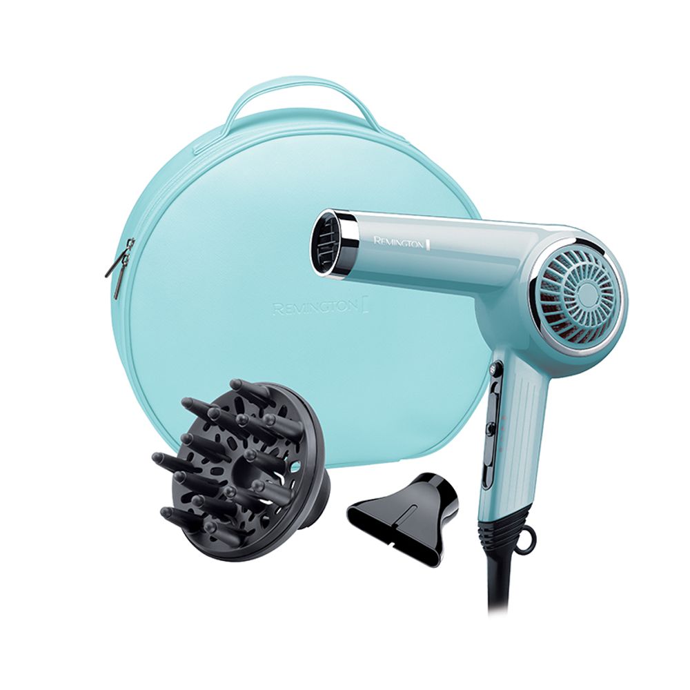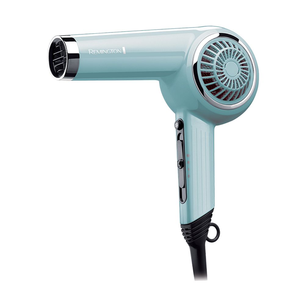 Σεσουάρ Remington D4110OB Retro Bombshell Blue, ισχύος 2000 W, με retro σχεδιασμό και κεραμική μάσκα για ομοιόμορφη κατανομή της θερμότητας και γρήγορο styling. Διαθέτει τρεις ρυθμίσεις θερμοκρασίας, δύο ρυθμίσεις ταχύτητας και κουμπί κρύου αέρα για τελειοποίηση του χτενίσματος.