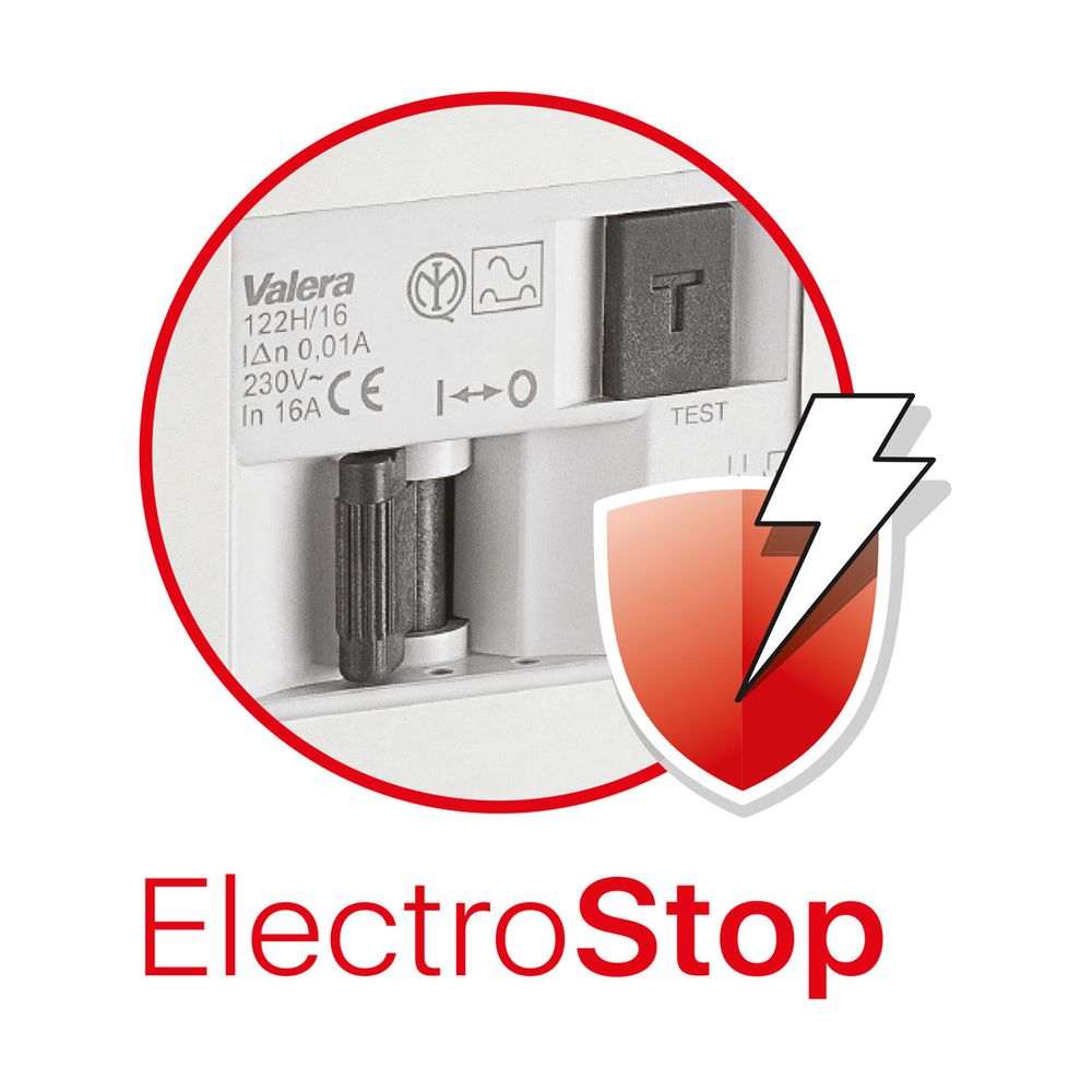 Επαγγελματικό σεσουάρ μαλλιών ξενοδοχειακού τύπου με επιτοίχια βάση και προστασία ElectroStop που ελαχιστοποιεί τον κίνδυνο ηλεκτροπληξίας που προκαλείται από ενδεχόμενο ρεύμα διαρροής (π.χ. το πιστολάκι μαλλιών που έρχεται κατά λάθος σε επαφή με νερό),ισχύος 2000W.