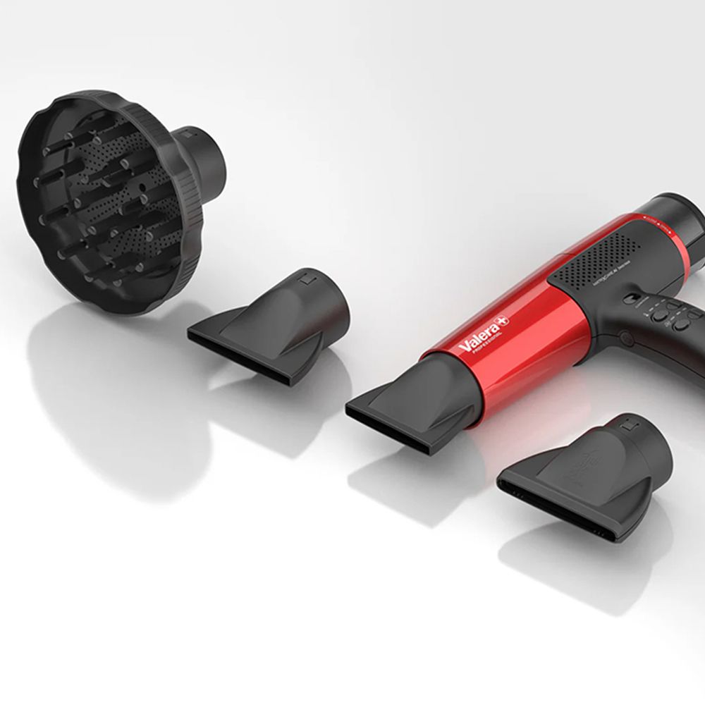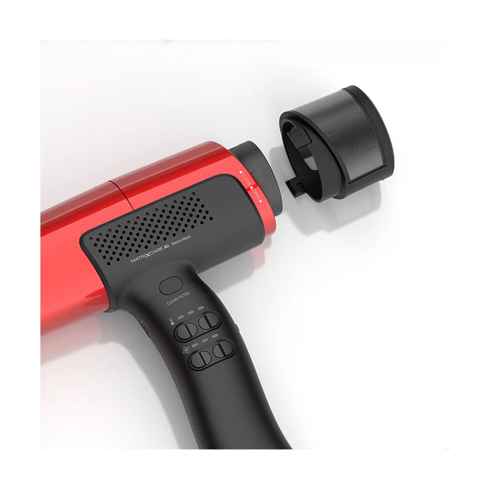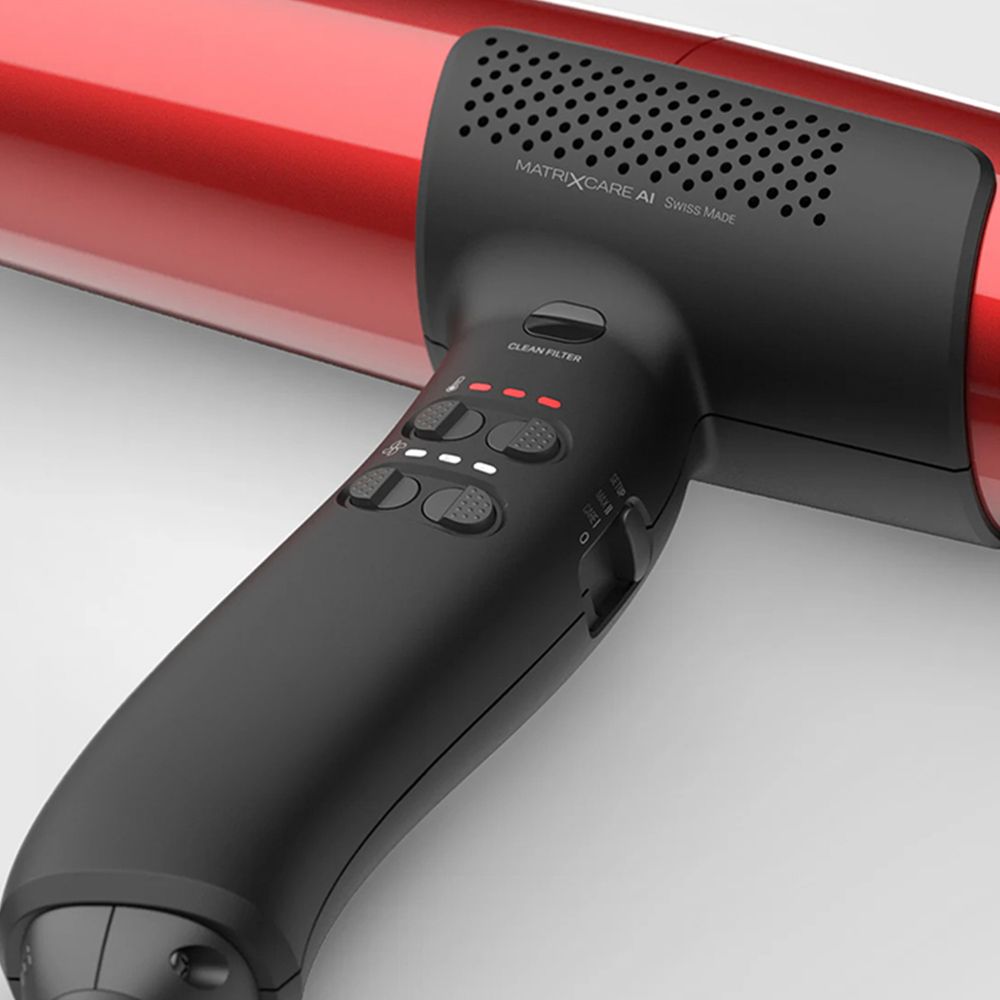 Το Matrixcare AI της Valera διαθέτει digital brushless μοτέρ 100K-PAX στα 2000W, με 100.000 RPM και ροή αέρα 80 m³/h. Με καλώδιο SuperFlex 3m και Rotocord για περιστροφή 360°, τέσσερα ακροφύσια styling, λειτουργία ιονισμού και 18 ρυθμίσεις θερμοκρασίας/ταχύτητας, προσφέρει απόλυτο έλεγχο. Ελαφρύ, αθόρυβο, με λειτουργία Auto-Clean για εύκολη συντήρηση, είναι ιδανικό για άνετο και επαγγελματικό styling.