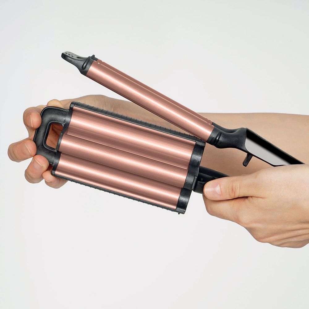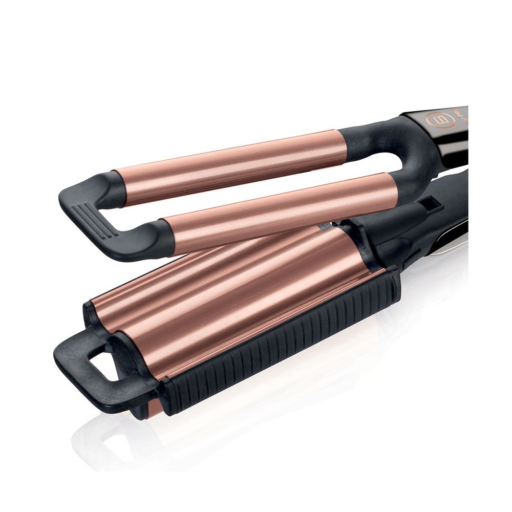 Πρωτοποριακό Hair-Styler για μαλλιά σε κυματοειδή μορφή (με επιλογή wide/short) με gloss κεραμική επικάλυψη πλακών για μέγιστη προστασία και λάμψη στα μαλλιά.