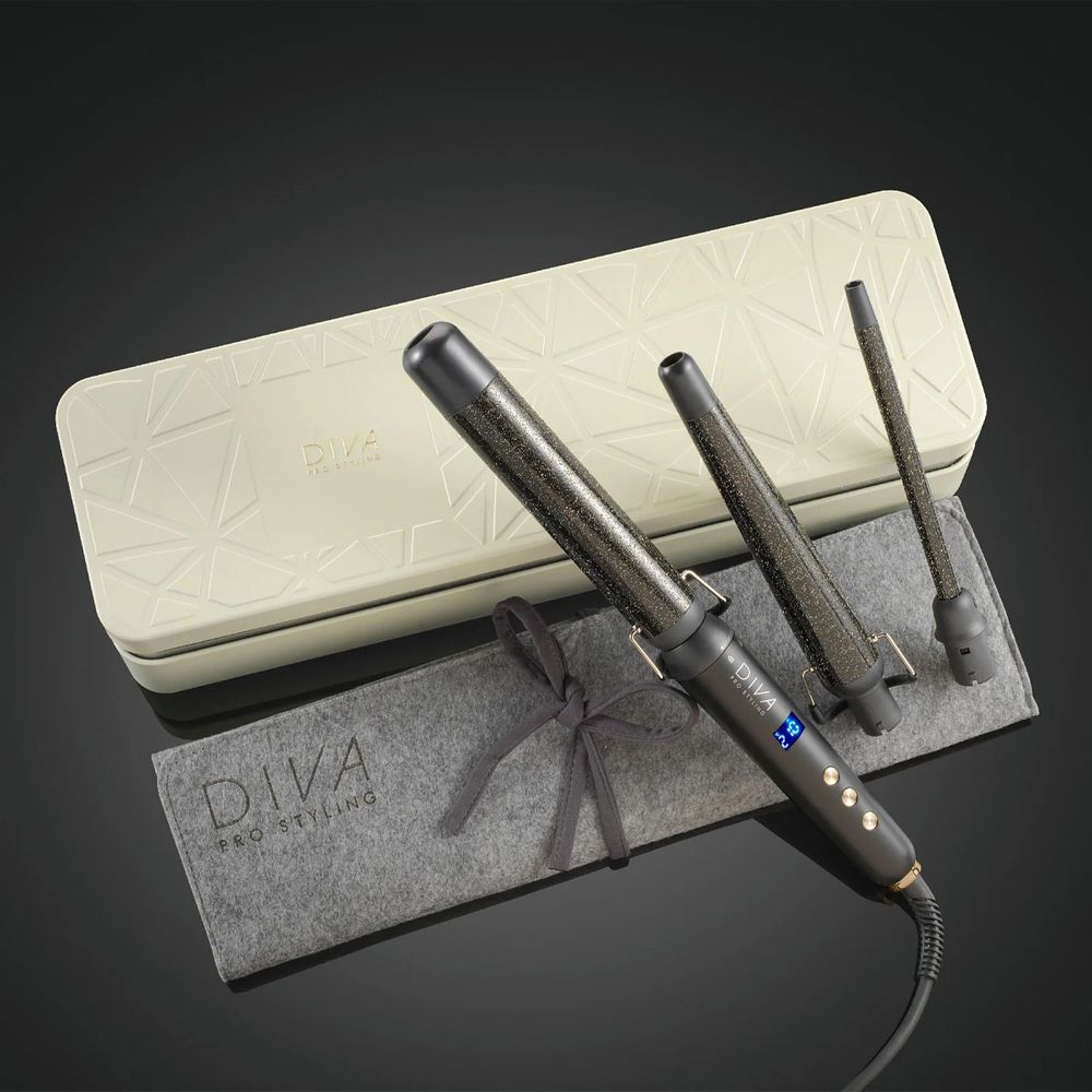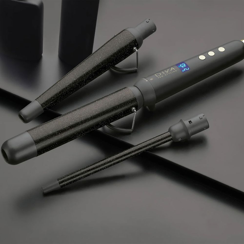 Αν επιθυμείς να ανανεώσεις τον «αέρα» των look σου και να δώσεις wild ή ρομαντικό χαρακτήρα στην εμφάνισή σου, ετοιμάσου να γνωρίσεις τον επαγγελματικό ψηφιακό πολύ-κώνο μαλλιών Precious Metals Gold Dust Multi-Wand της DIVA Pro! Με 3 αποσπώμενες, κεραμικές ράβδους εμποτισμένες με χρυσόσκονη και έλαια argan, macadamia και κερατίνης, δυνατότητα ψηφιακής ρύθμισης της θερμοκρασίας από 80˚C έως 210˚C, καθώς και τεχνολογίες ιονισμού αλλά και γρήγορης, ομοιόμορφης θέρμανσης.