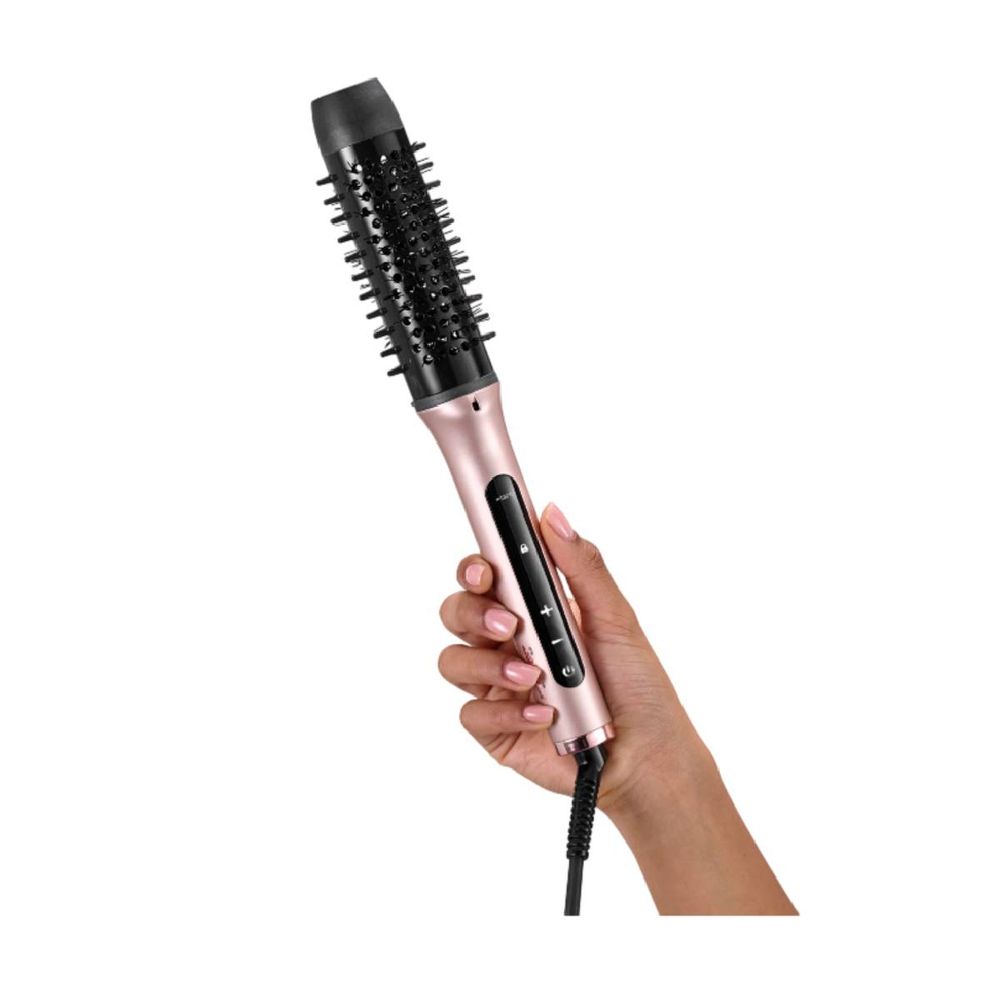 Η ηλεκτρική βούρτσα HSB200E 38 mm σου προσφέρει εύκολο φορμάρισμα και φυσικό όγκο από τη ρίζα, χάρη στην κεραμική επίστρωση και το ιονικό σύστημα που μειώνει το φριζάρισμα. Με 4 ρυθμίσεις θερμοκρασίας έως 190°C και ψηφιακή οθόνη αφής, προσαρμόζεται στον τύπο μαλλιών σου για γρήγορο styling σε στεγνά μαλλιά. Η πολλαπλή τάση, το καλώδιο 1,8 m και το αντιθερμικό πατάκι την κάνουν πρακτική και ιδανική για ταξίδια.