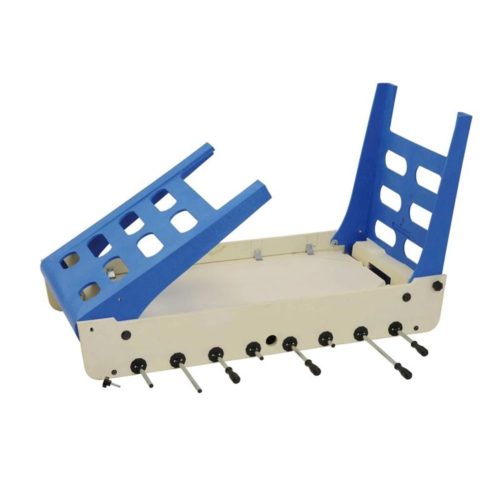 Το ποδοσφαιράκι Open Air Outgoing διαθέτει αδιάβροχη επιφάνεια παιχνιδιού με λευκές γραμμές από μεταξοτυπία τυπωμένο σε πράσινο φόντο που αντέχει στην υγρασία και δεν εξασθενεί από τον ήλιο και χρωμιωμένες χαλύβδινες ράβδους πάχους 16 mm, για αποτροπή σχηματισμού σκουριάς.