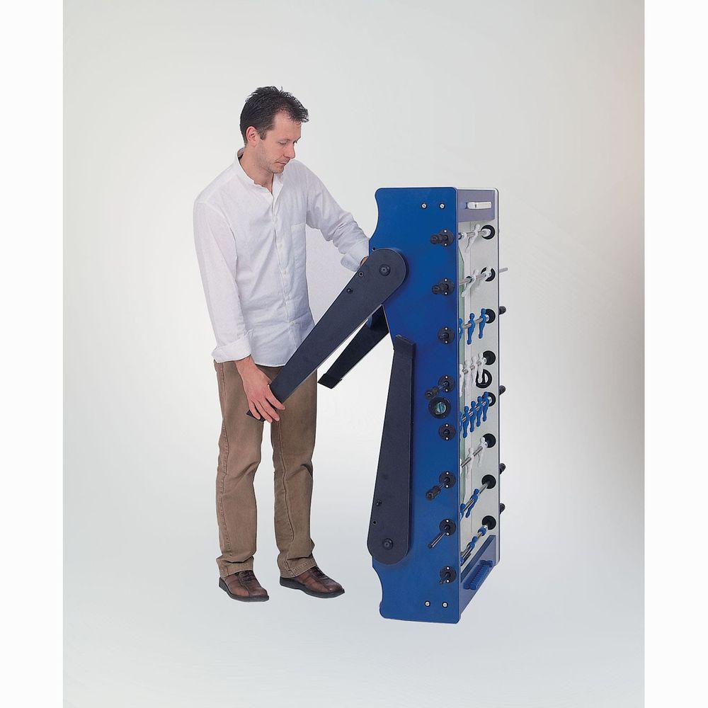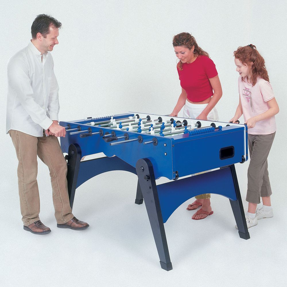 Ποδοσφαιράκι Foldy της Garlando, με πτυσσόμενα πόδια από mdf που διπλώνουν κάτω από την επιφάνεια παιχνιδιού, επικάλυψη με μελαμίνη, πίνακα σκορ, και ράβδους στερεωμένοι μέσω ρουλεμάν. Διαθέτει 4 προστατευτικά ελαστικά για στήριξη, ενώ είναι διαθέσιμο με πλήρως περιστρεφόμενο 360 ° ή μη-περιστρεφόμενο 180 ° τερματοφύλακα.