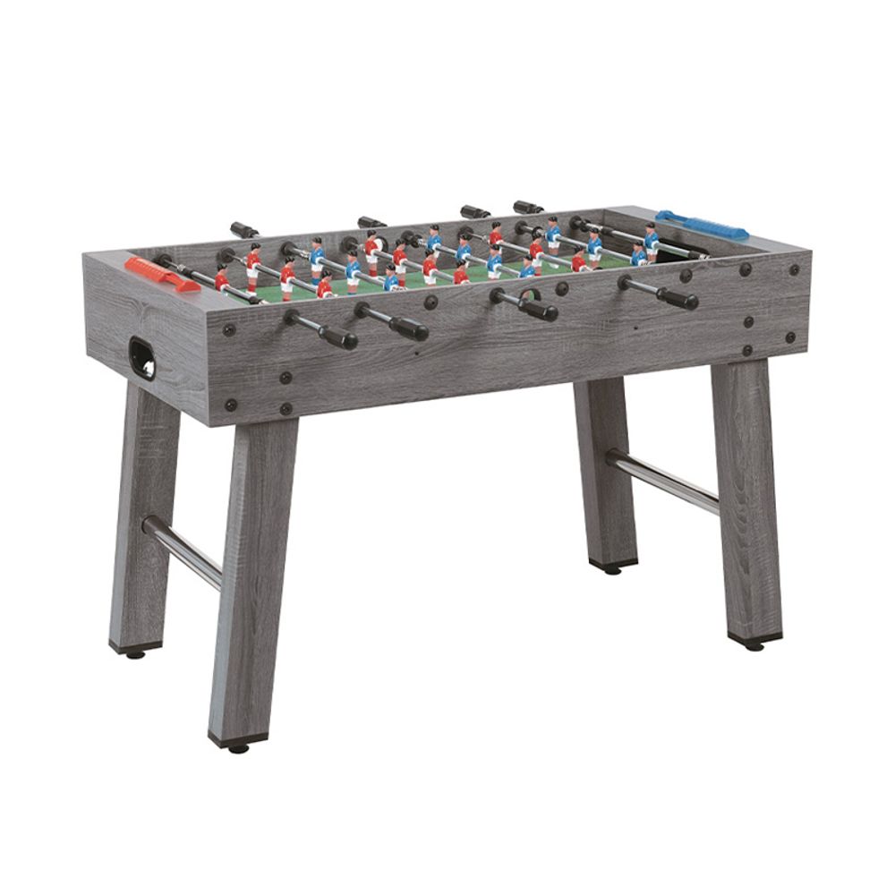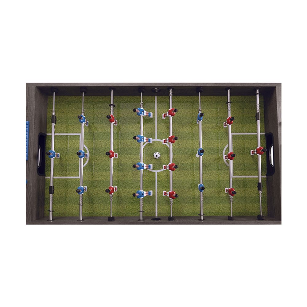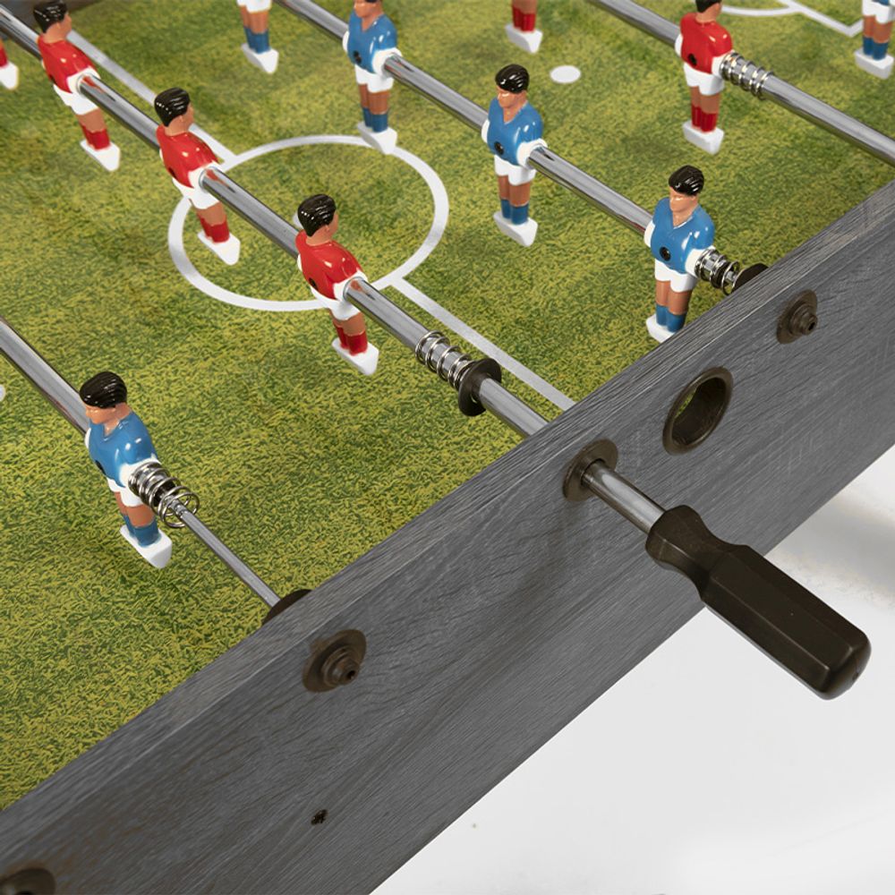 Ξύλινο ποδοσφαιράκι Garlando, με τηλεσκοπικές ράβδους, ιδανικό για νέους παίκτες. Κατασκευασμένο από MDF πάχους 15mm με επένδυση μελαμίνης σε χρώμα δρύινο γκρι. Με ιδιαίτερο εφέ γρασιδιού που δίνει την εντύπωση πραγματικού εδάφους. Διαθέτει έξοδο πίσω από κάθε τέρμα για γρήγορη και εύκολη ανάκτηση μπάλας.