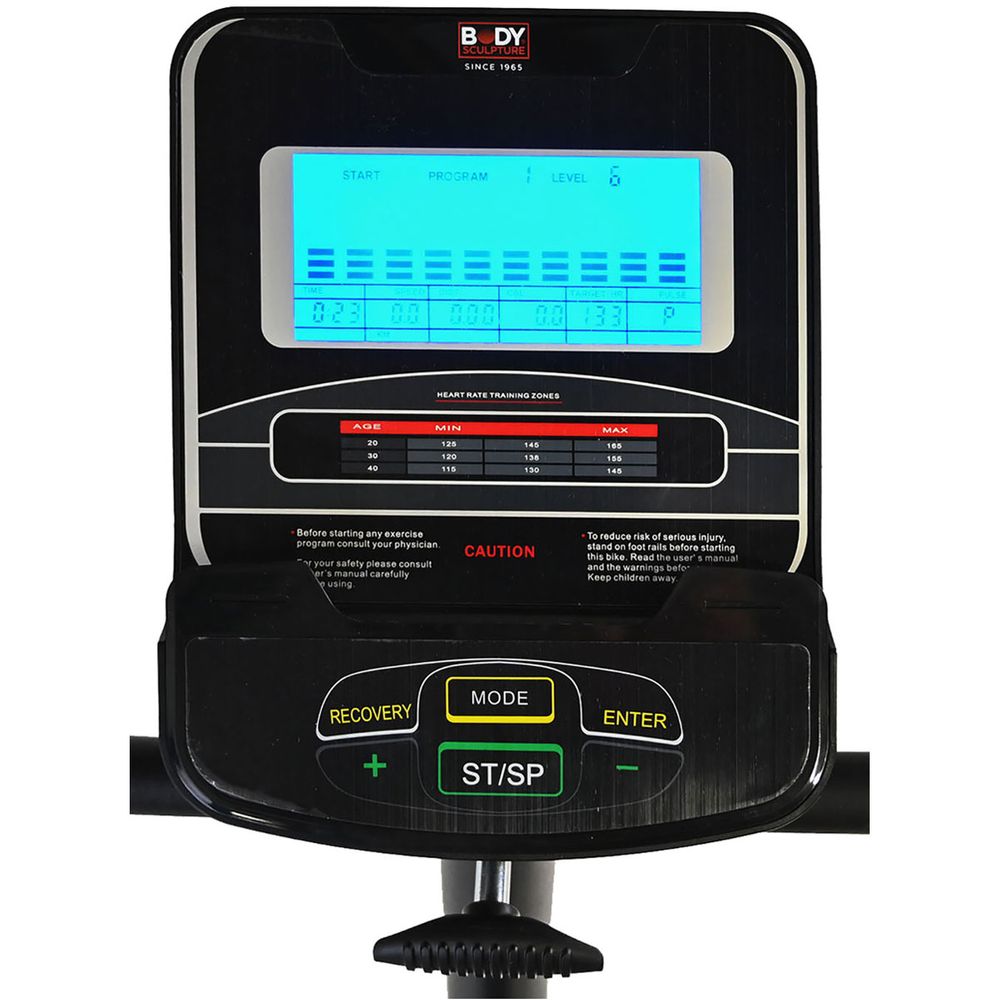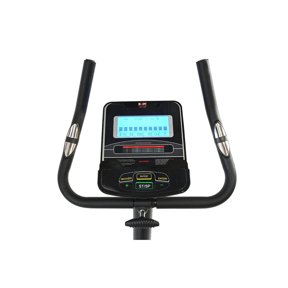 Το μαγνητικό ποδήλατο Body Sculpture BC-3110G είναι ιδανικό για να διατηρήσεις τη φυσική σου κατάσταση με μια αθόρυβη & ομαλή προπόνηση στο χώρο σου. Διαθέτει δίσκο βάρους 5 kg, ρυθμιζόμενη μαγνητική αντίσταση 16 επιπέδων σε συνδυασμό με το μαγνητικό φρένο υψηλής ποιότητας & τον ιμάντα, οθόνη LCD, αντιολισθητικά πεντάλ για σταθερή κίνηση & μέτρηση καρδιακών παλμών με αισθητήρες στις χειρολαβές. Κατάλληλο για χρήστη με μέγιστο βάρος έως 110 kg. Διαθέτει rollers για εύκολη μεταφορά κατά την αποθήκευσή του.