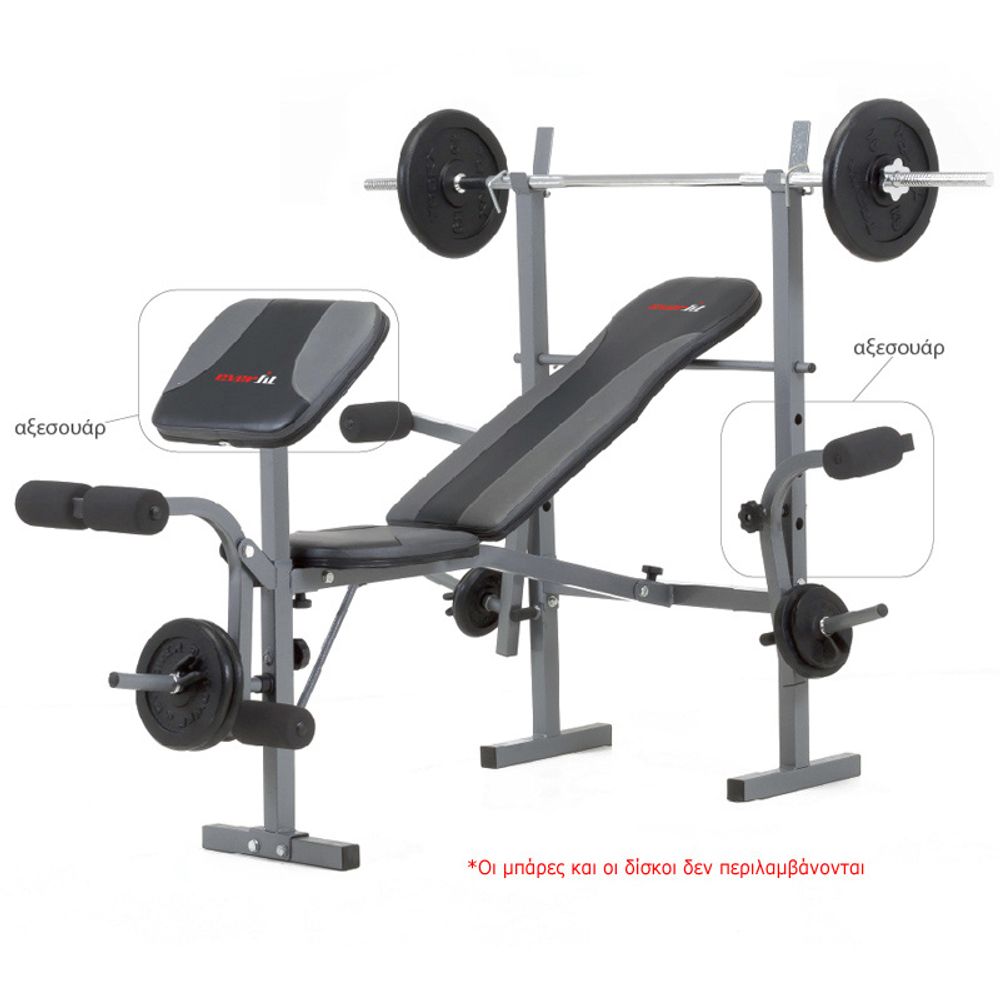 Οι δίσκοι βάρους, η μπάρα, το μαξιλάρι δικεφάλων και το κιτ πεταλούδας δεν περιλαμβάνονται.