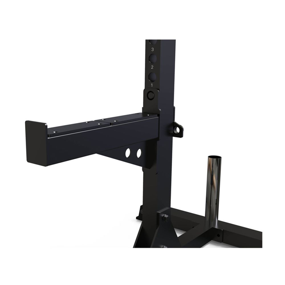 Πλαίσιο: χαλύβδινοι σωλήνες τετράγωνης διατομής 75x75 mm και πάχους 3 mm, Στηρίγματα j-cup / safety spotter: με ρυθμιζόμενο ύψος 45 - 189 cm, σε 25 επίπεδα ανά 6 cm, Στηρίγματα j-cup / safety spotter: μεγάλης αντοχής, πάχους 8 mm, με ειδικά προστατευτικά UHMW, Πιστοποιήσεις: CE EN ISO 20957-1/957-4, Βάρος: 58 kg
